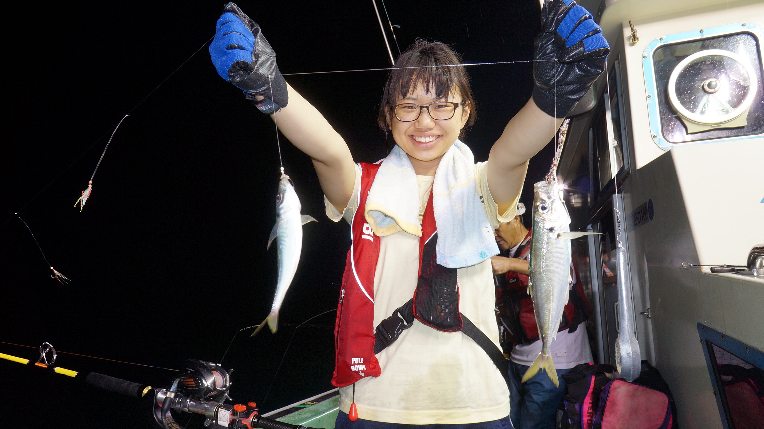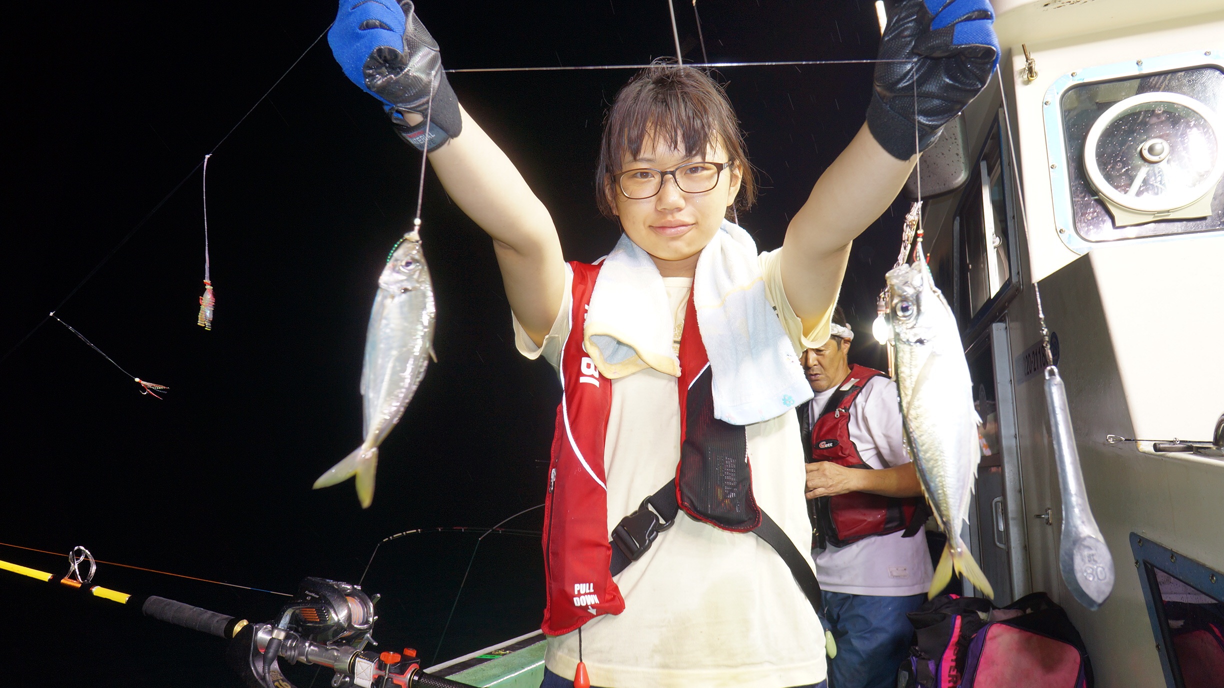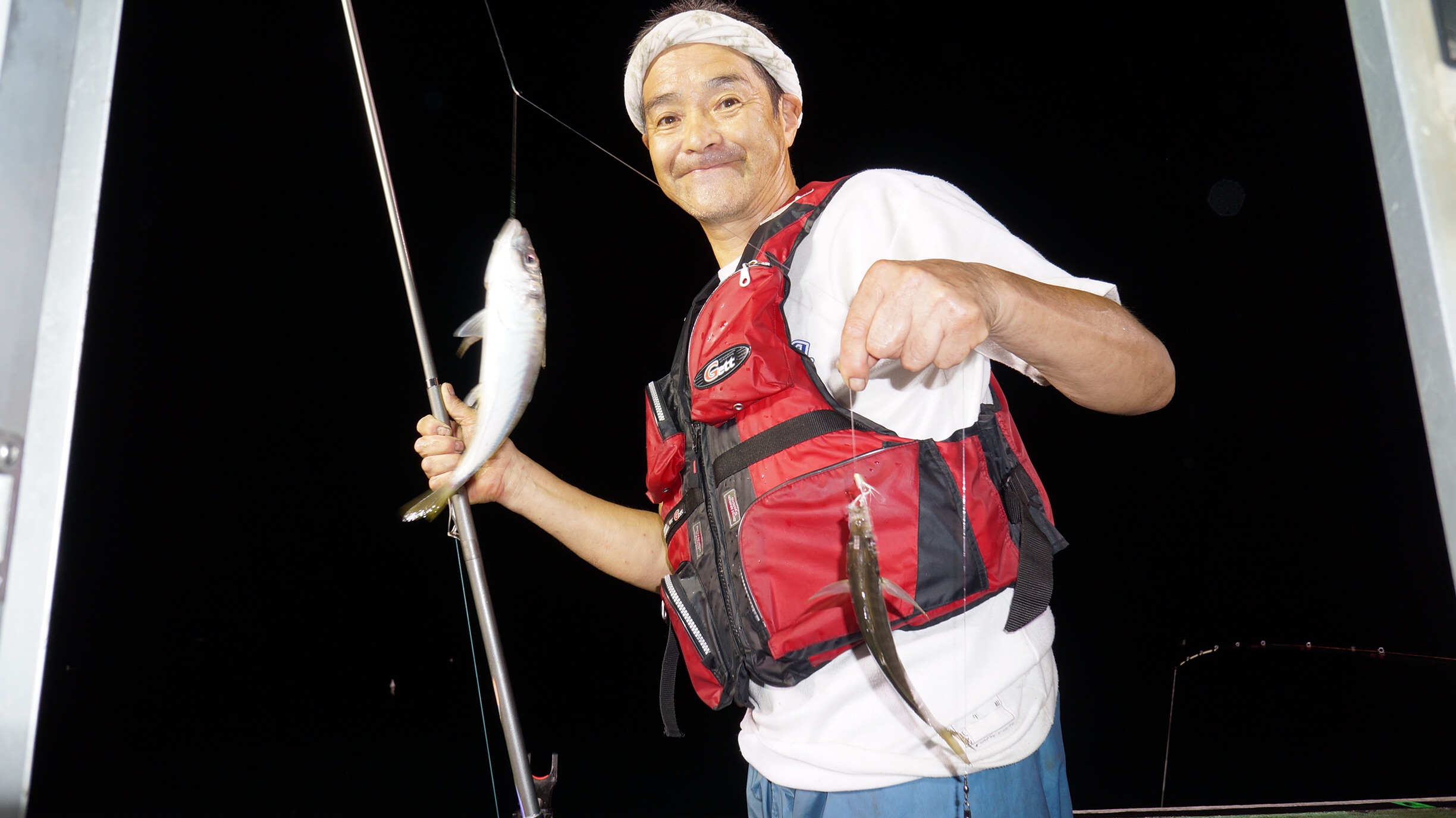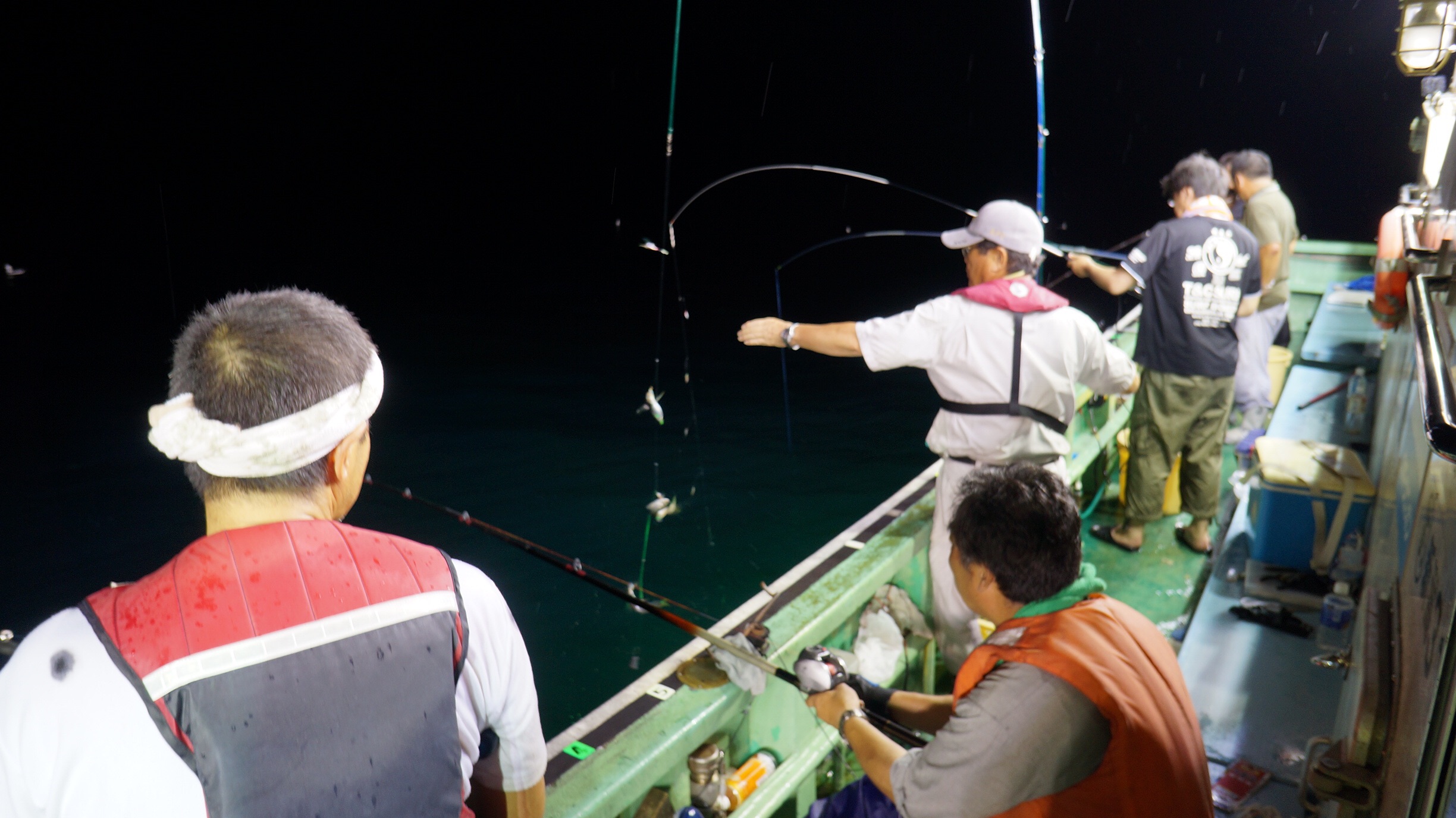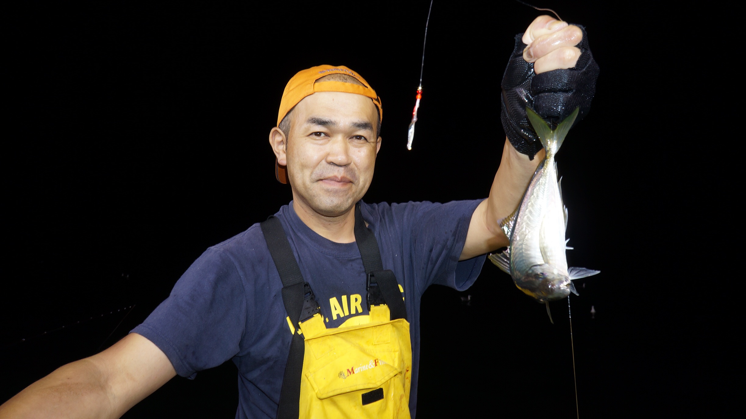 お盆前にしては北風が吹き、夜にうねりがのこり、少し船に揺れがありました。潮の流れもなく、船が移動せず苦戦しましました。アジ、さば、真ダイ、イシモチなど混ざりの釣果になりました。