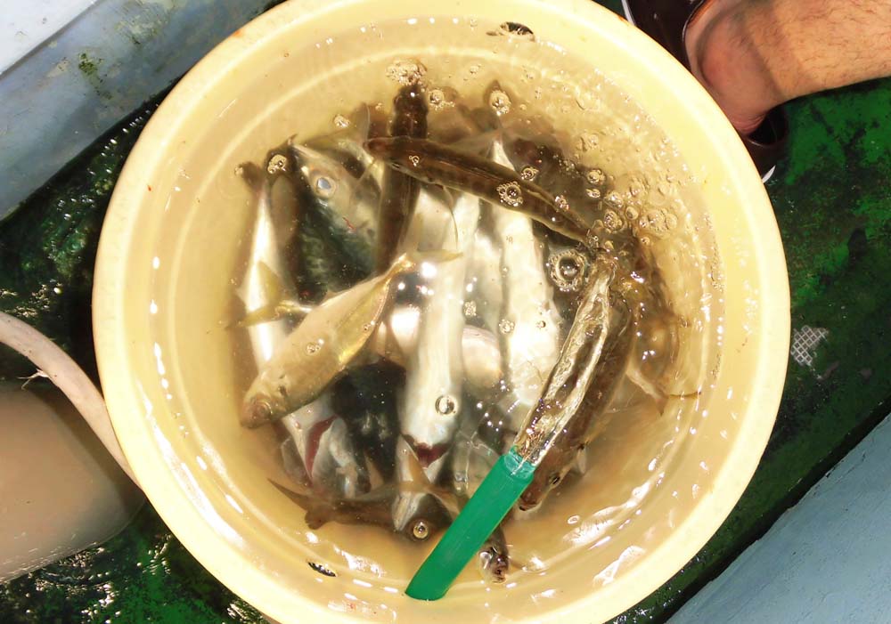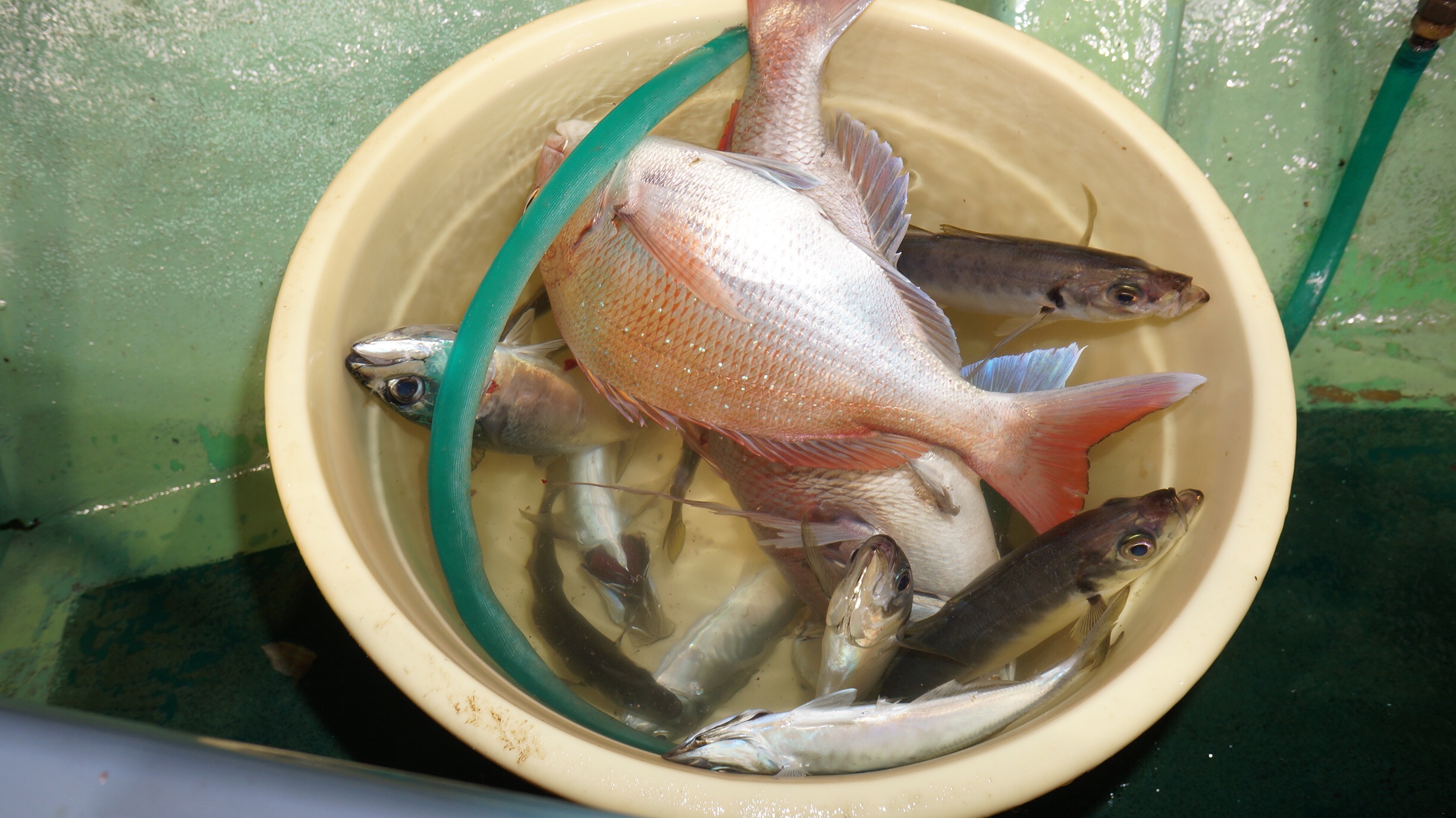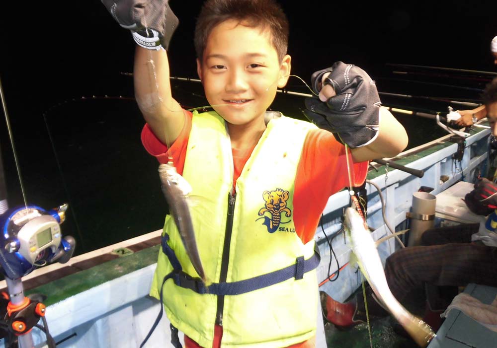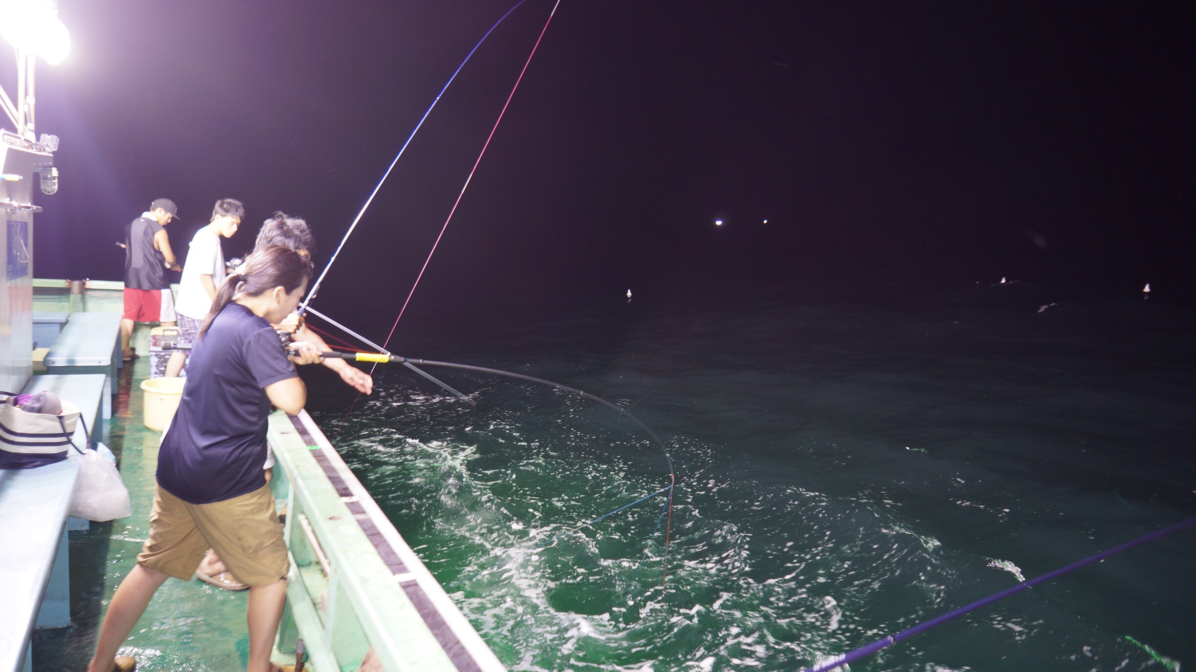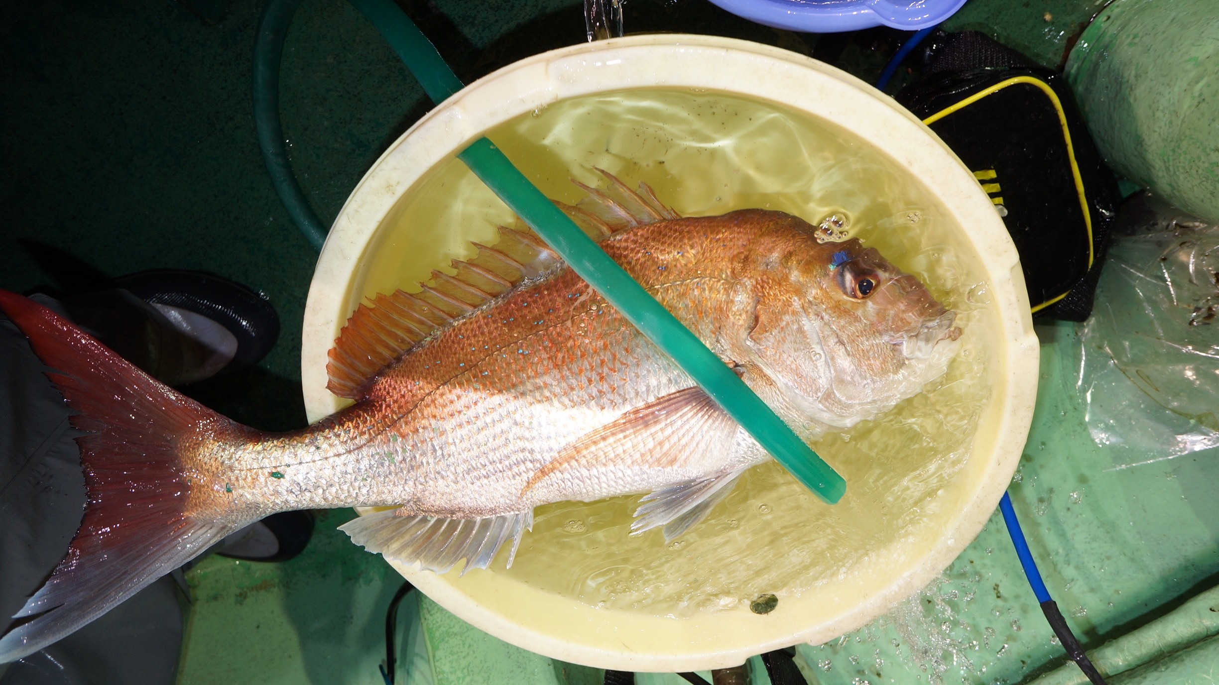お盆前にしては北風が吹き、夜にうねりがのこり、少し船に揺れがありました。潮の流れもなく、船が移動せず苦戦しましました。アジ、さば、真ダイ、イシモチなど混ざりの釣果になりました。