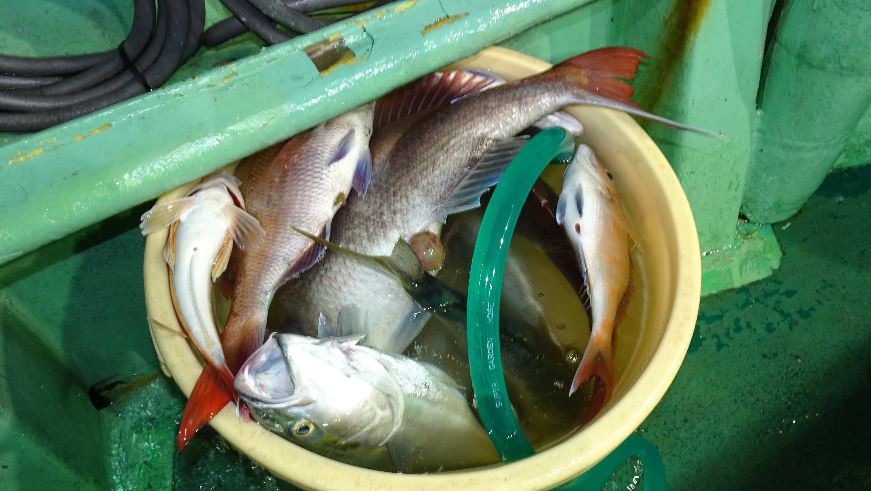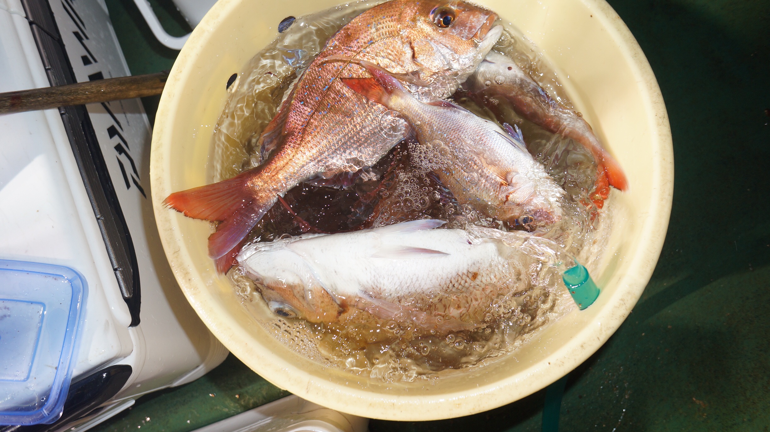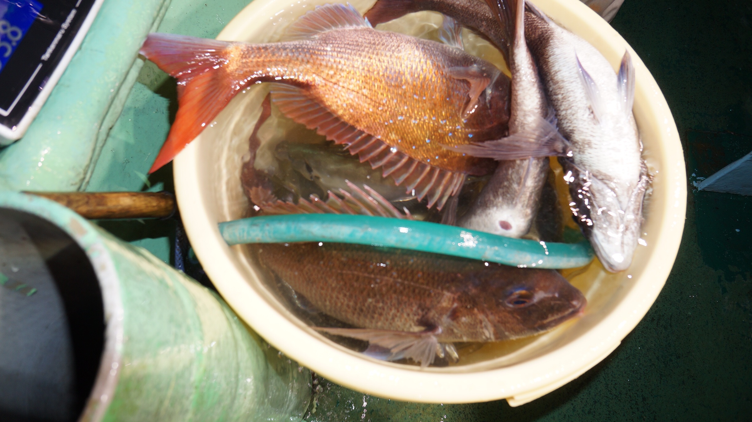 本日海上穏やか流れ良く、アジ、マダイ、イナダ、ワラサ釣れました、