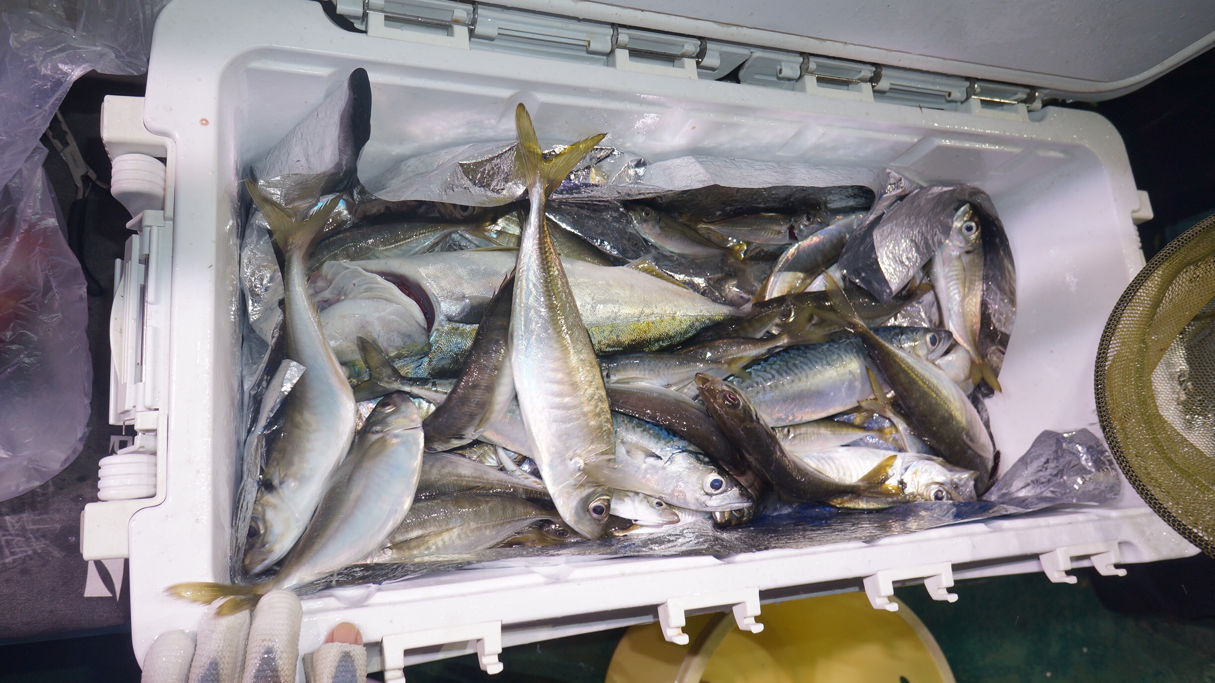 海上穏やか流れ、魚影良く、アジ入れ食いしました、他マダイ、イナダ、サバ多数匹