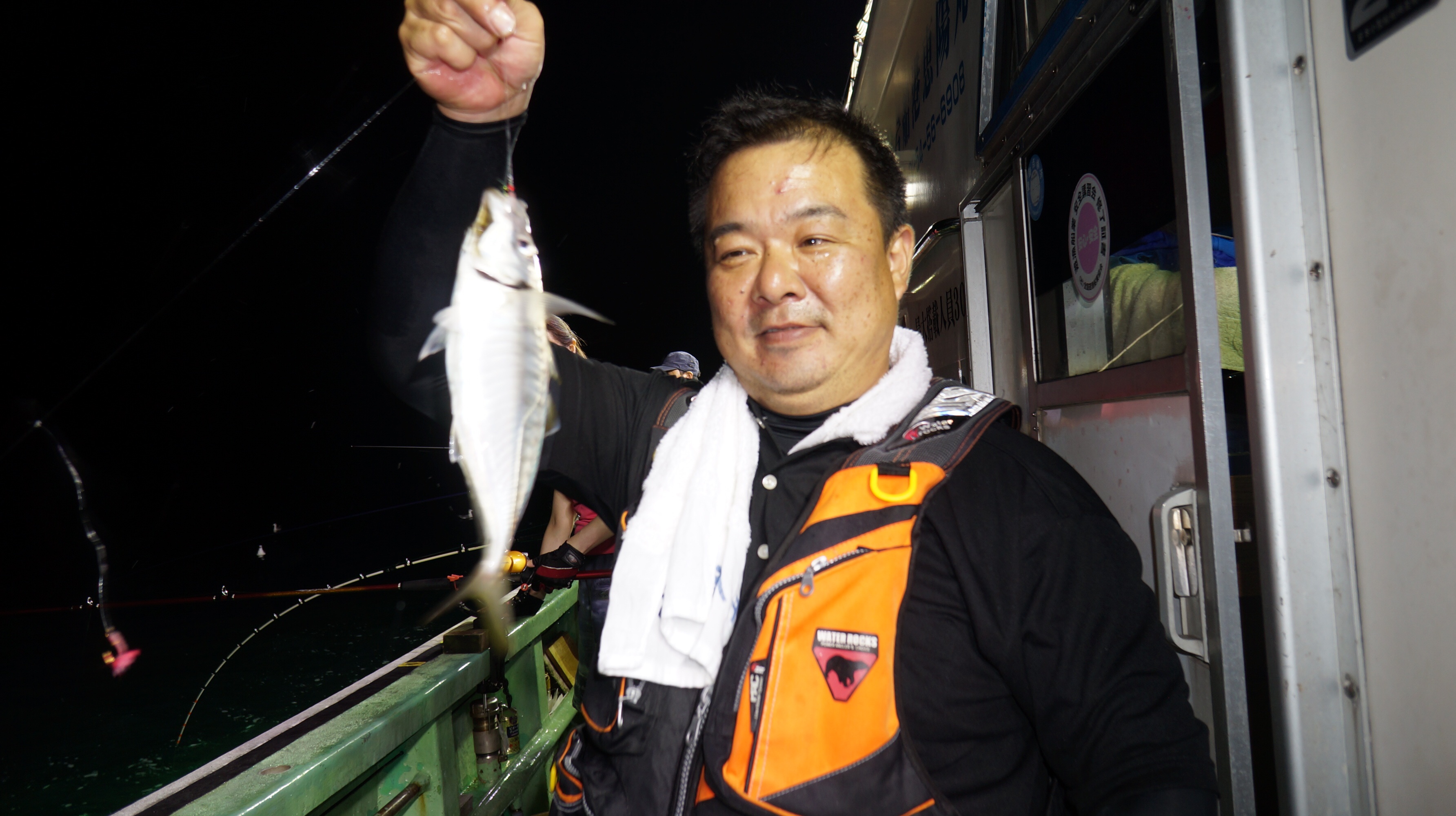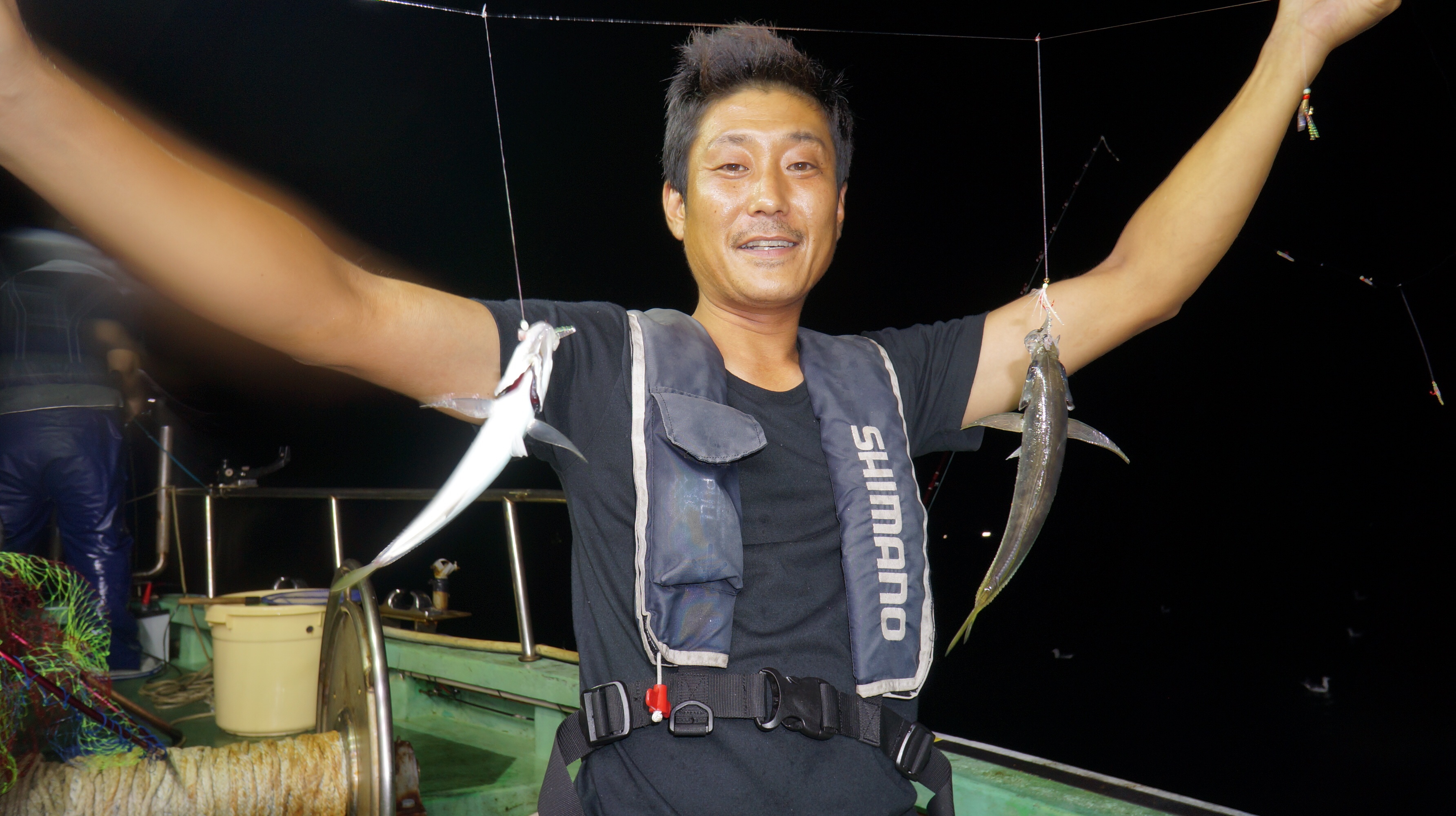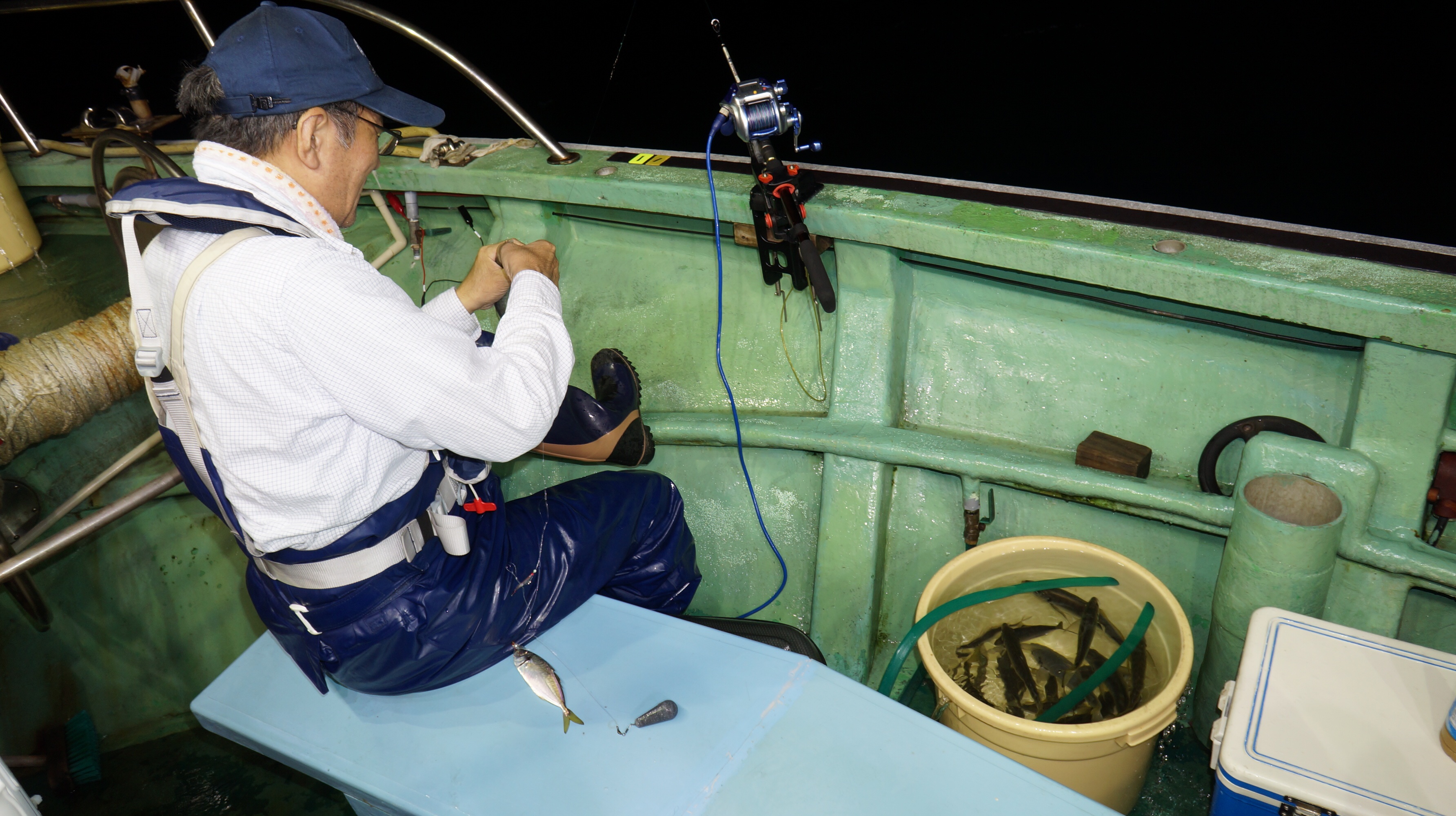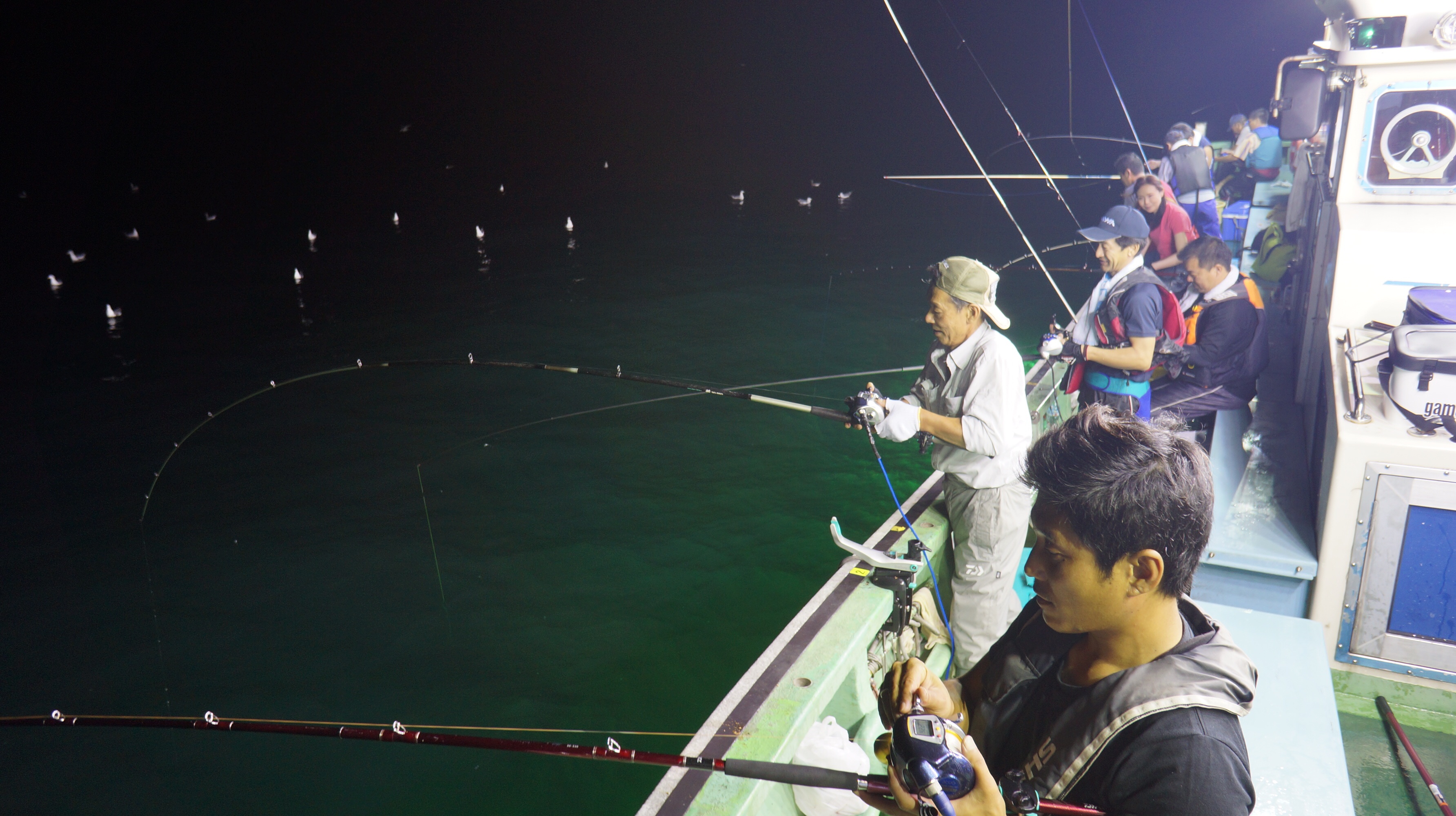 本日流れ少し早かつたが、魚影良く灯り点灯時より、アジ、大サバ、フクラゲ、マダイ、