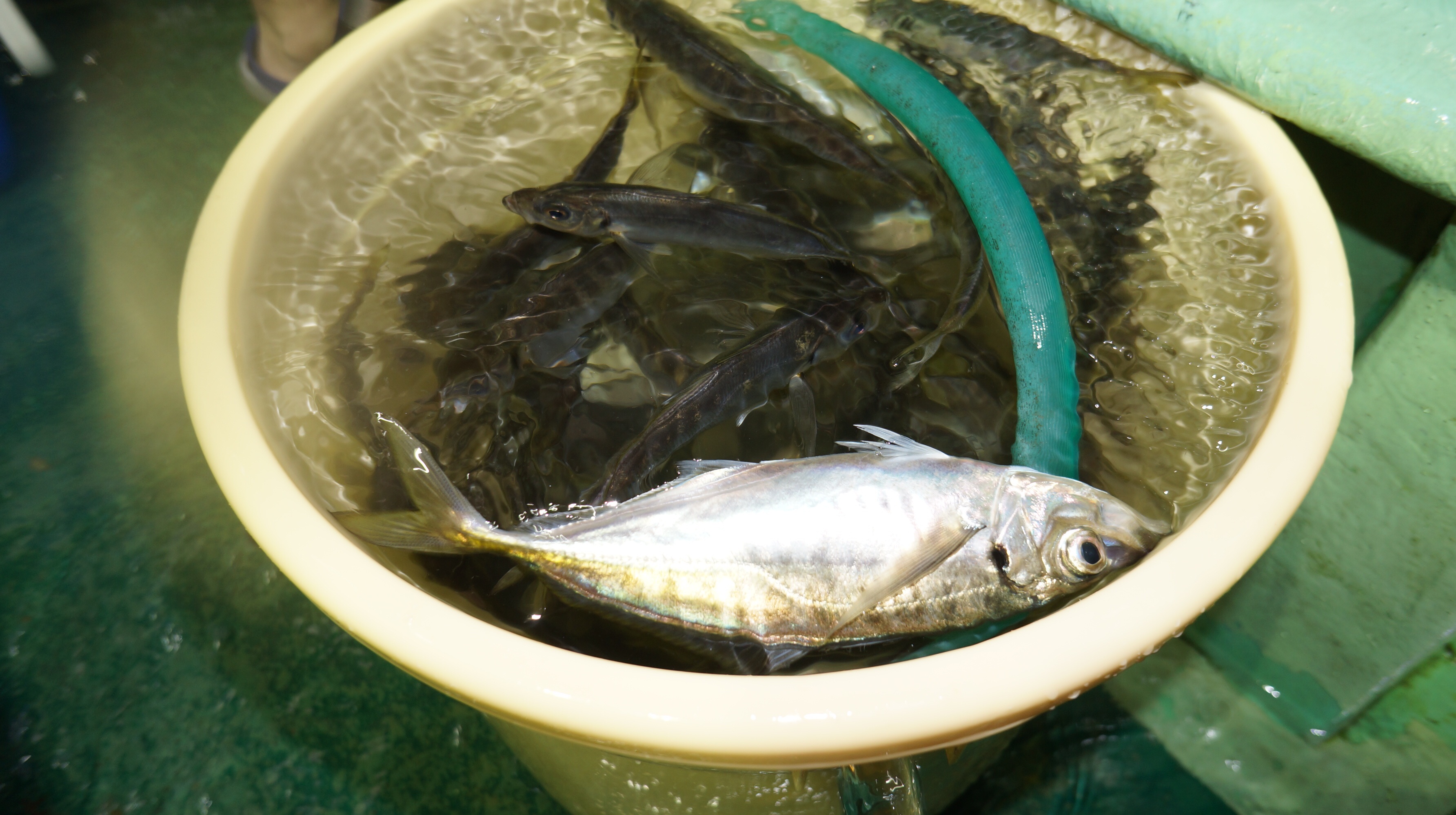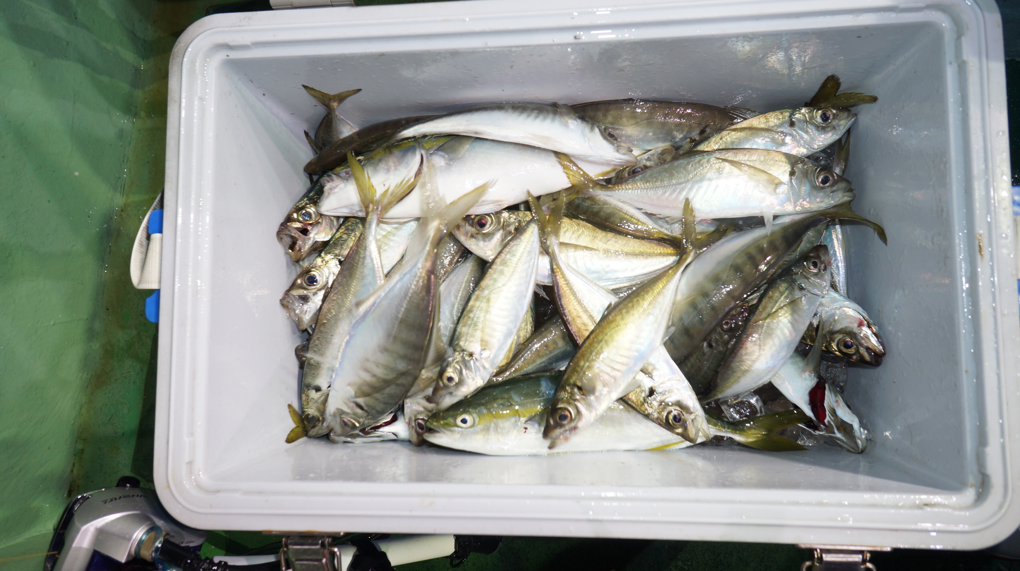 本日海上うねりが有り、流れ無くアンカー定まらず苦戦しましたが、アジ入れ食い大漁しました。