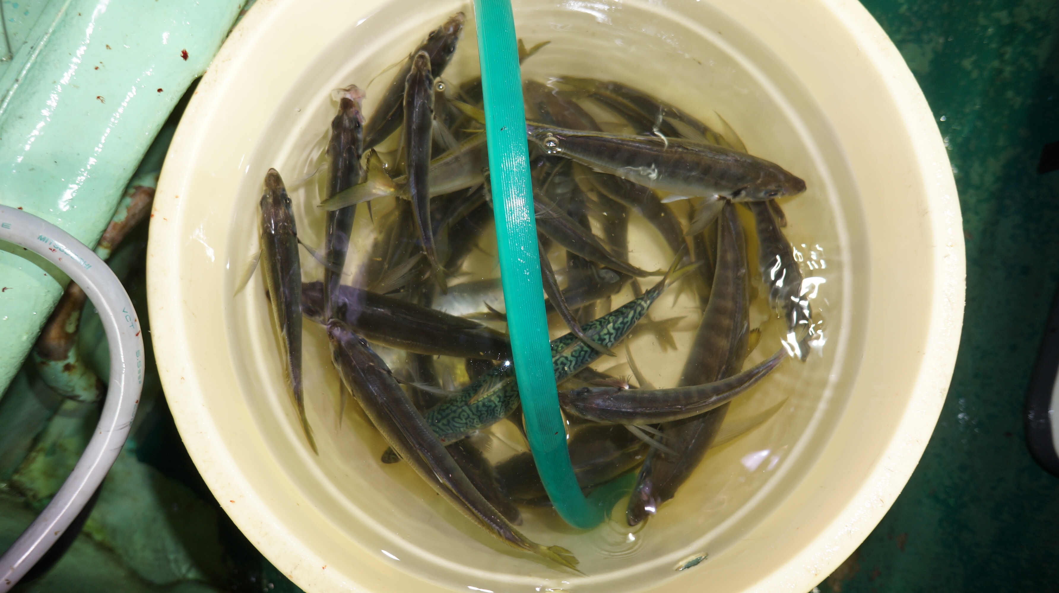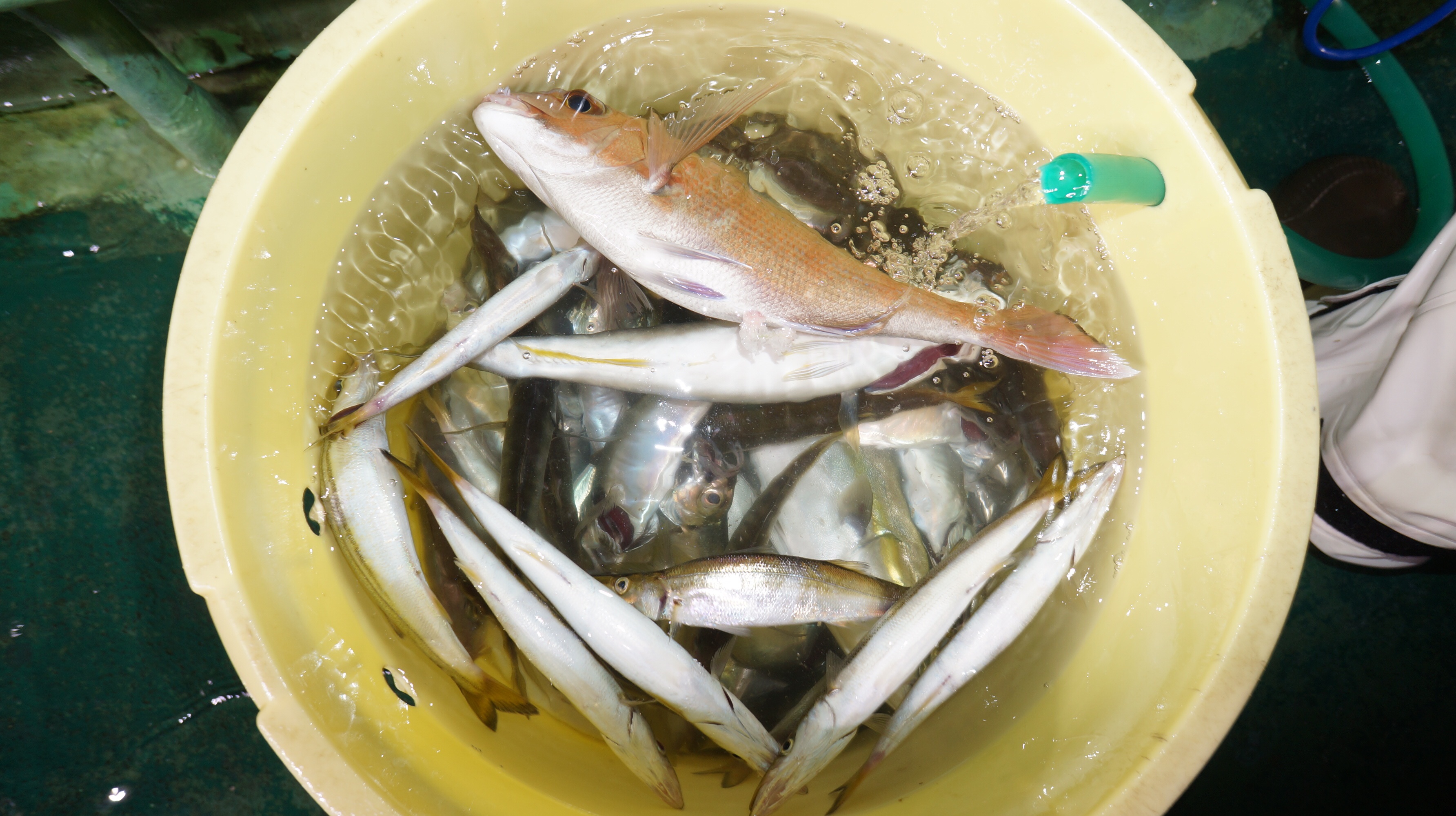 本日魚影良く、アジ、マダイ、サバ、イナダ釣れました。他後半カマス入れ食いしました。