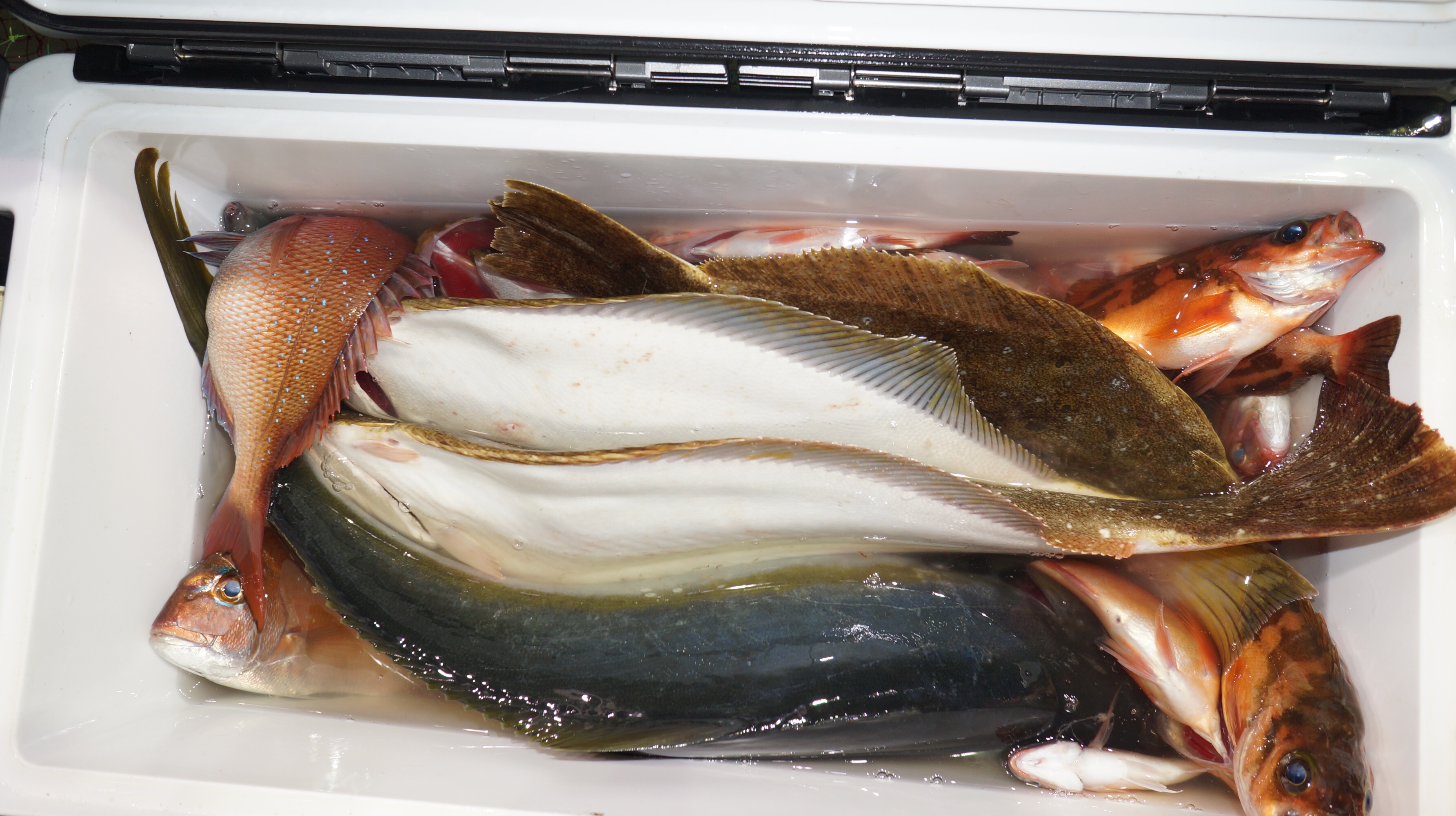 ヒラマサ、ヒラメ、釣れました。他ハナダイ多数匹、