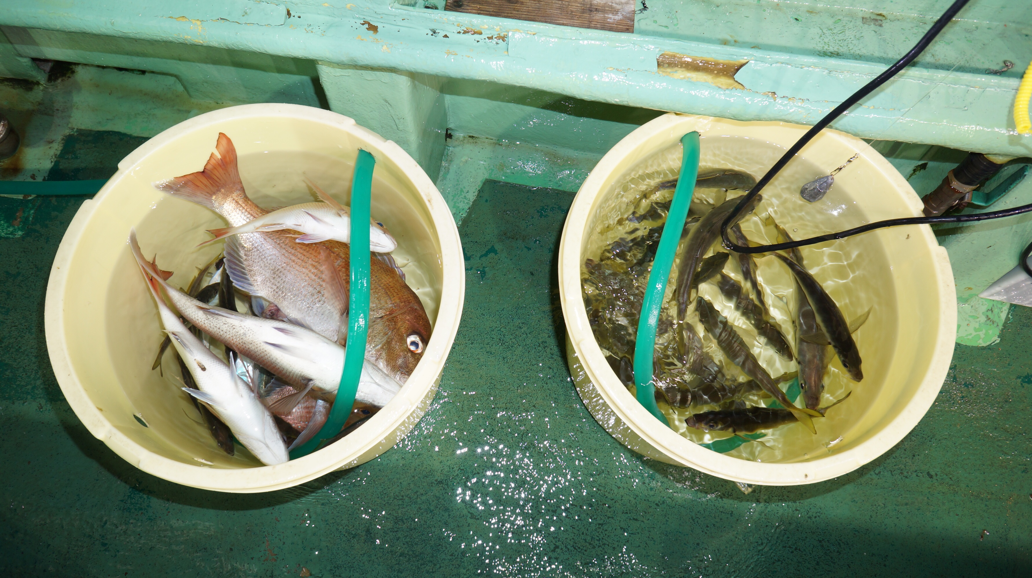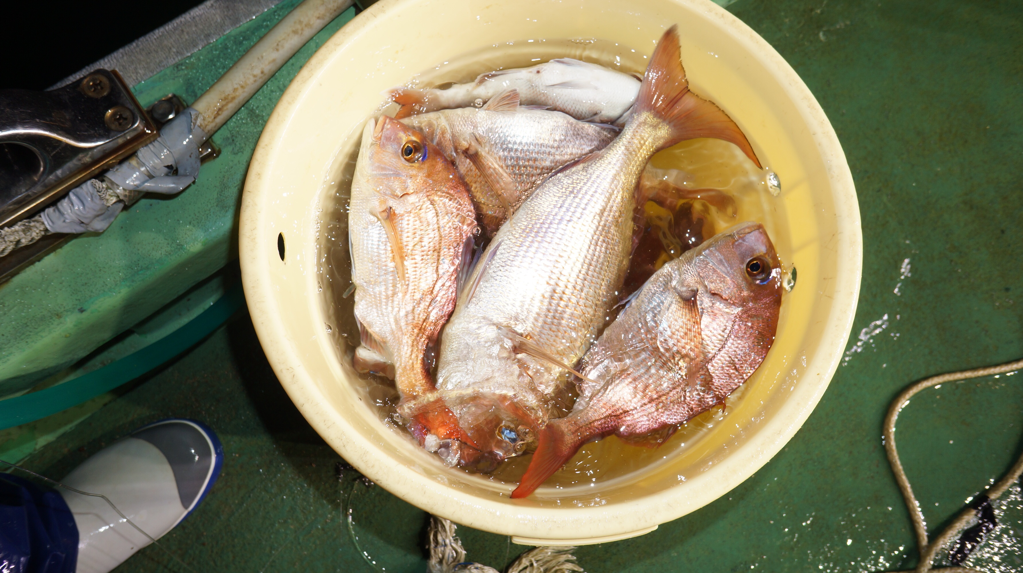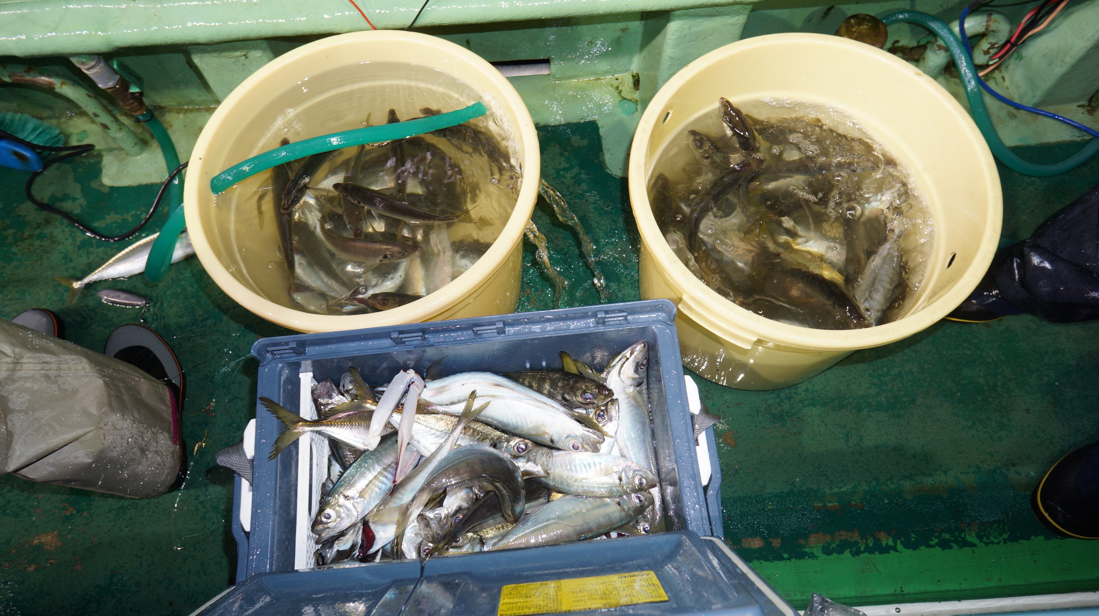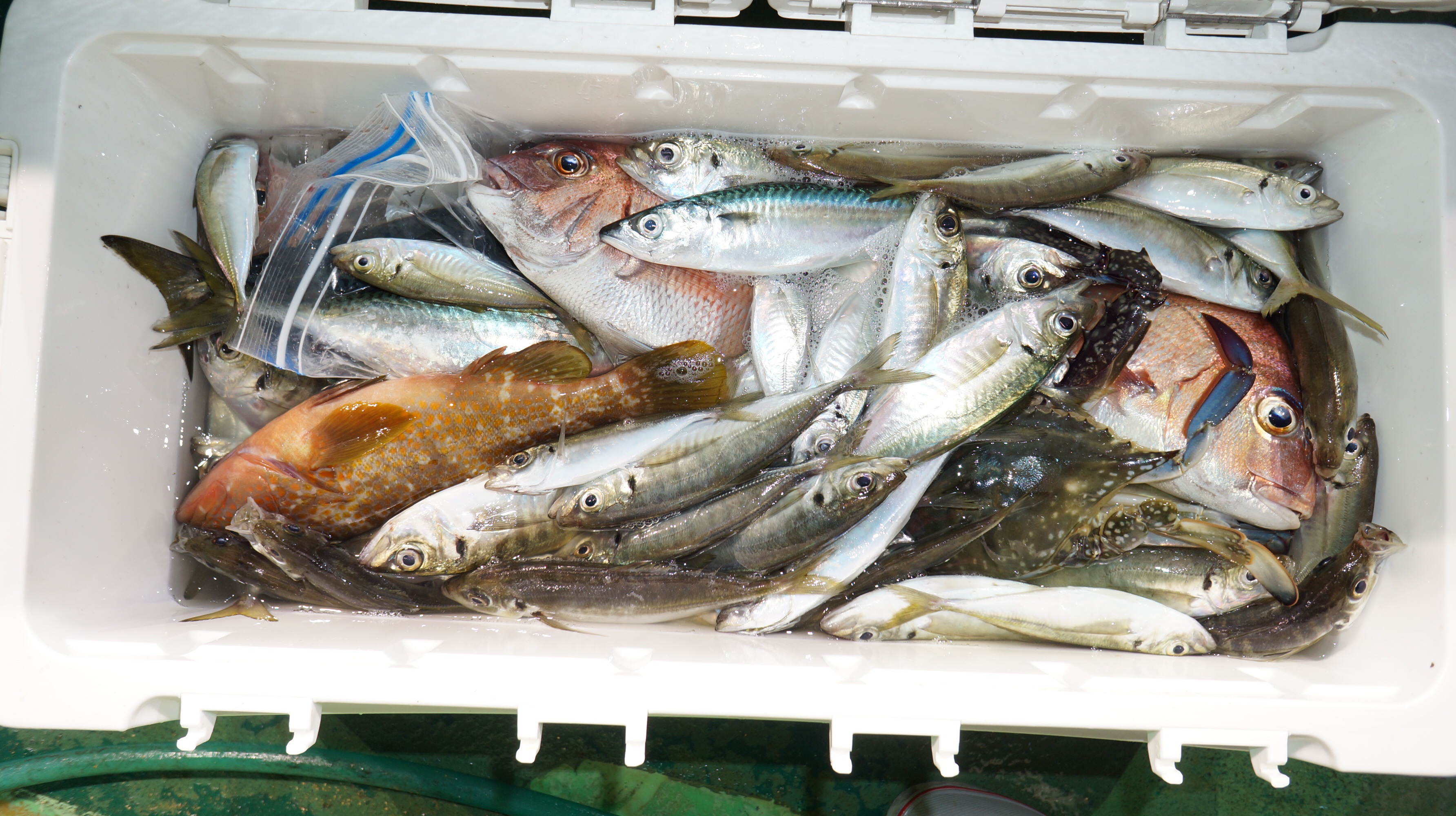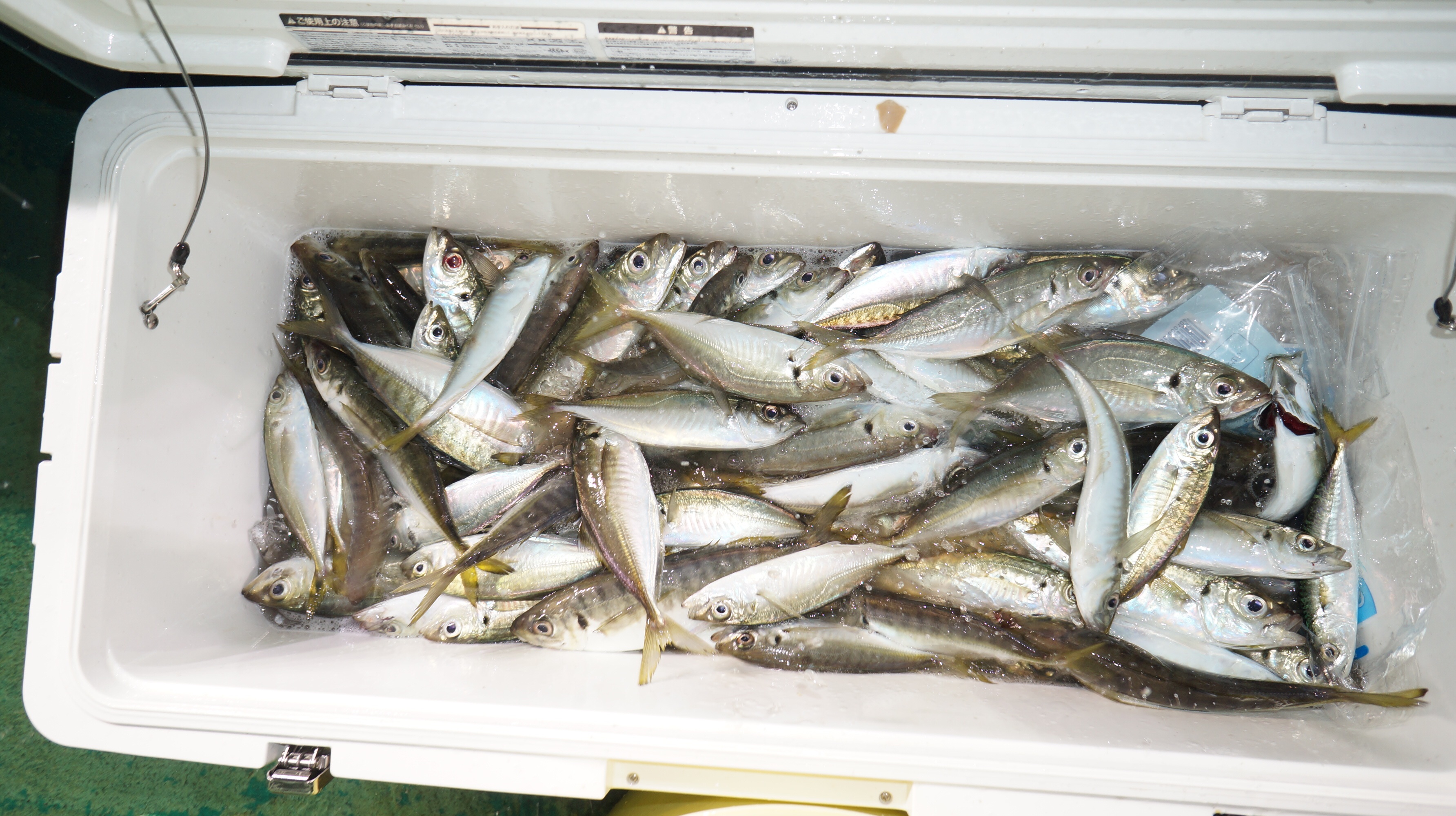 本日も海上穏やかで、魚影良くアジ入れ食い瀑釣大漁しました。他マダイ、サバ、スズキ釣れました。