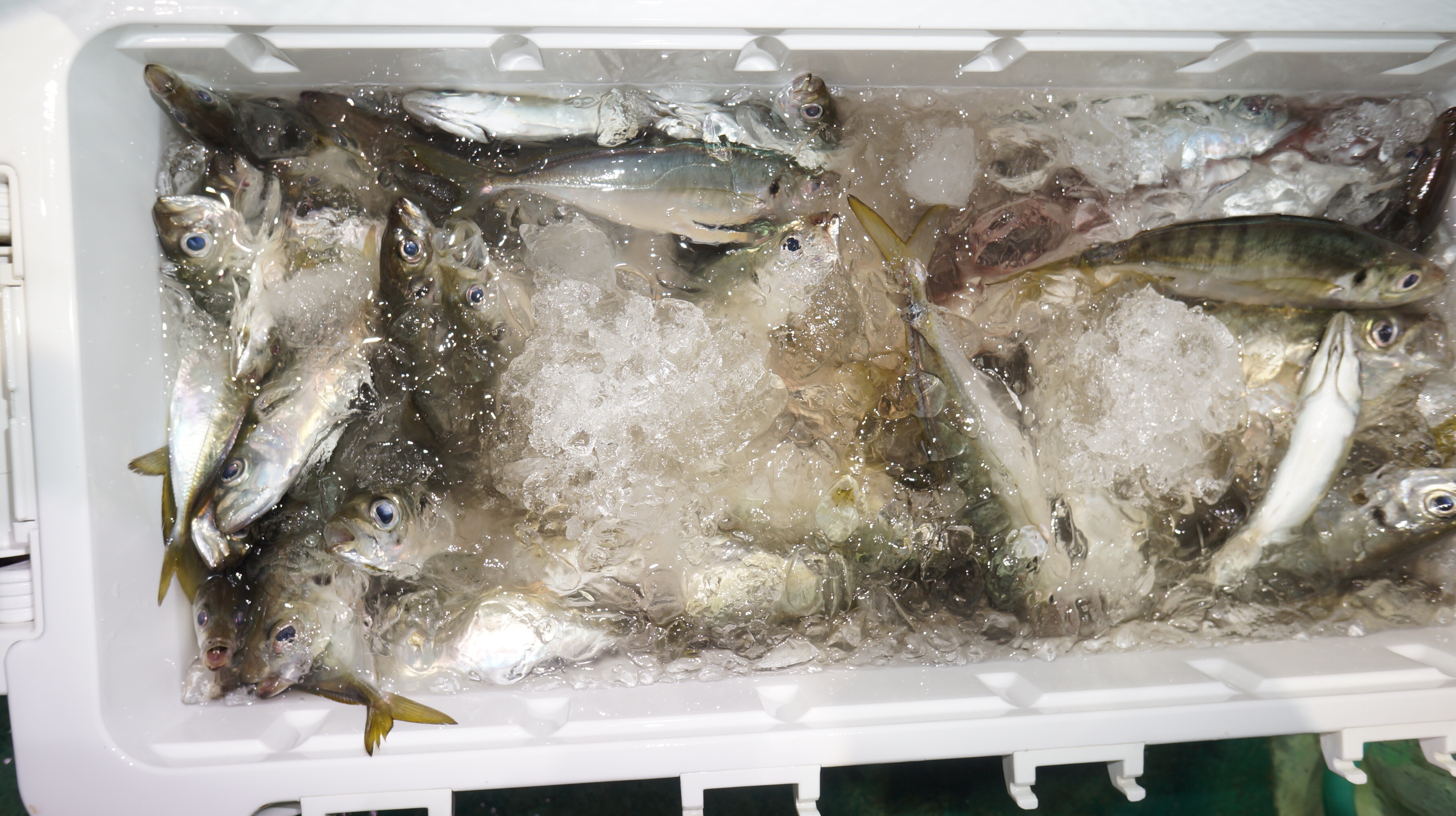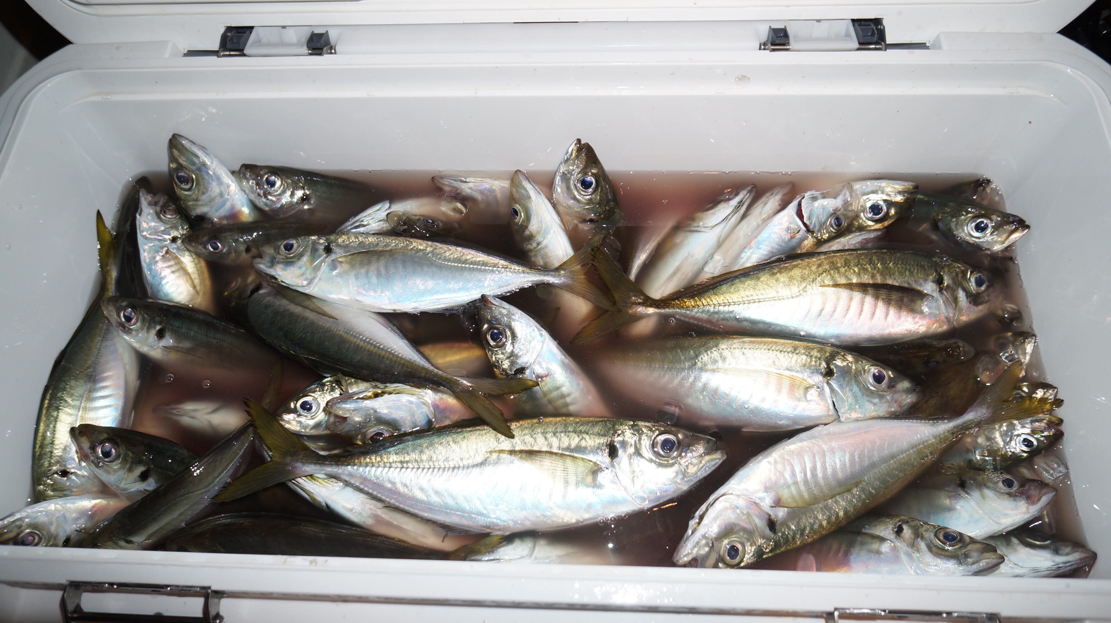 今日も海上穏やかで、魚影良くアジ入れ食い大漁しました。他マダイ、サバ、スズキ、サワラ