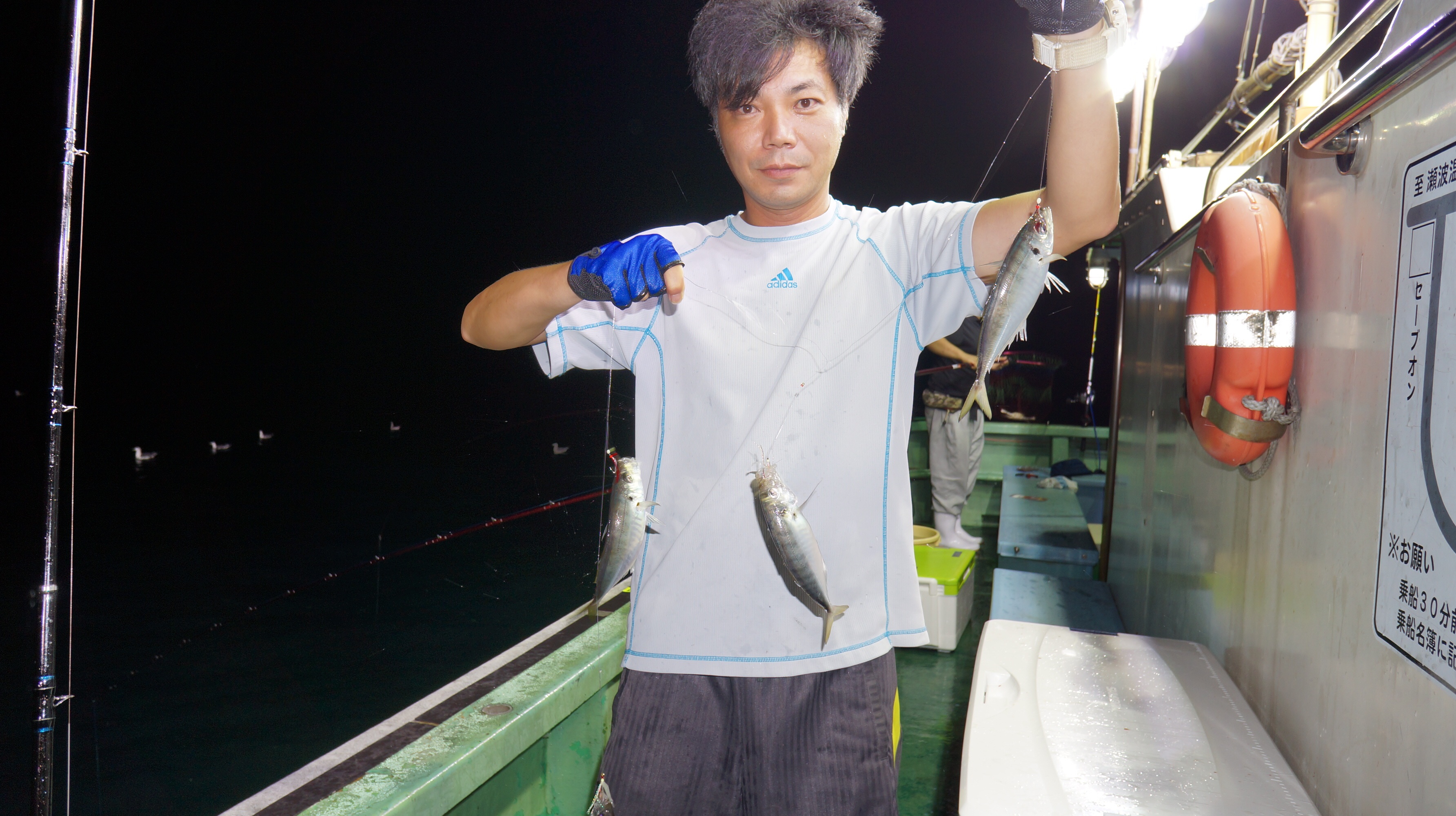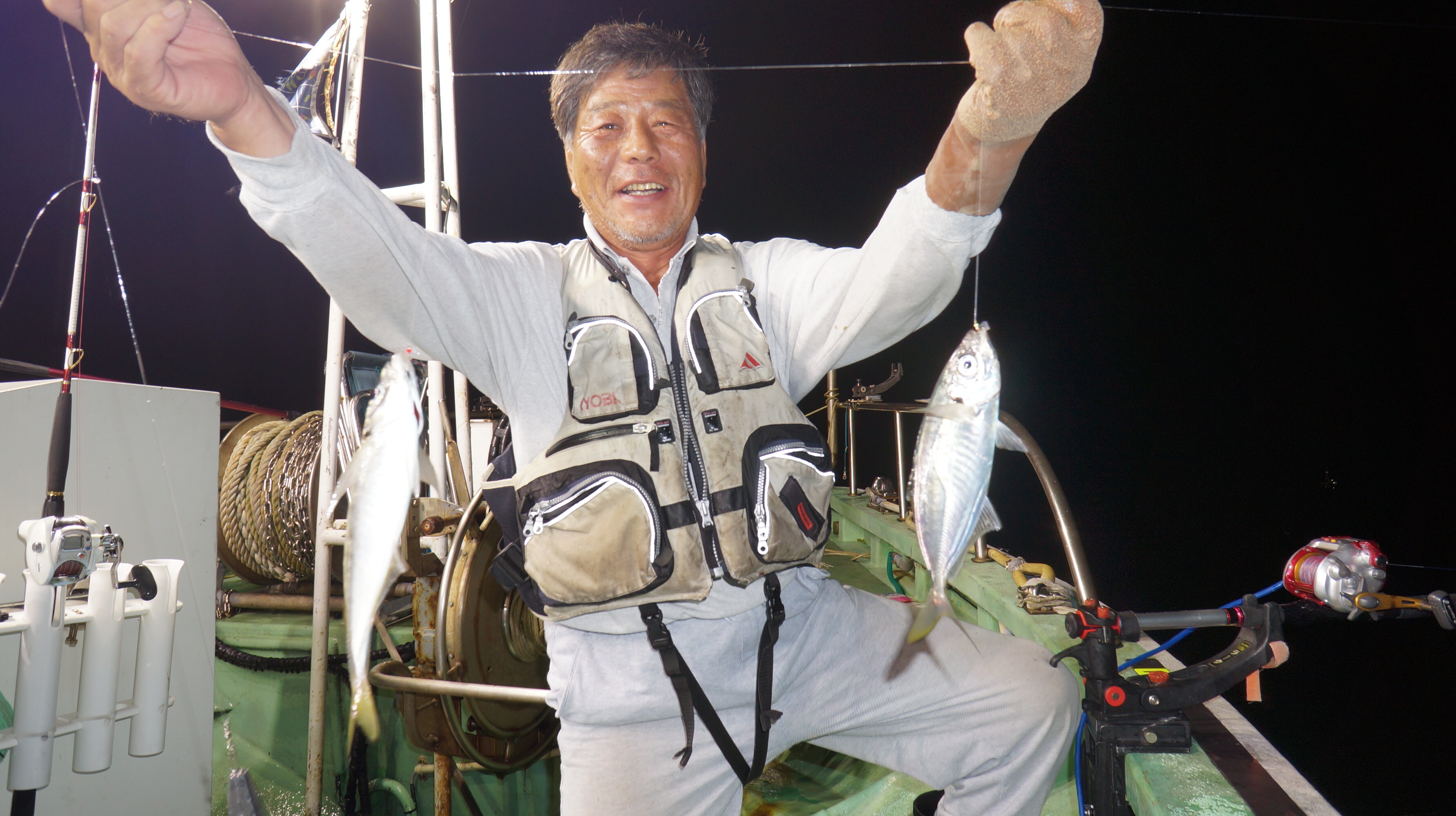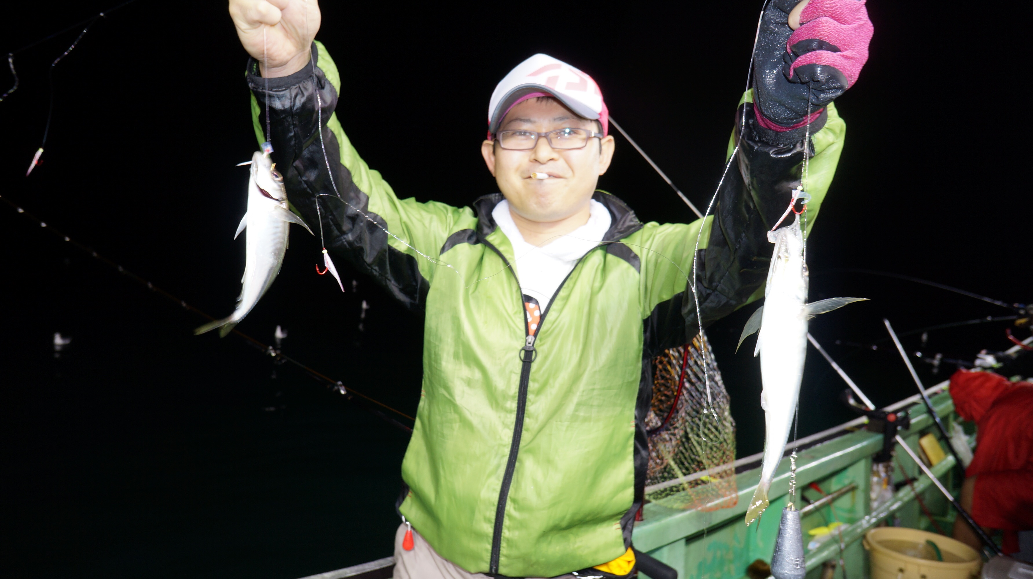本日出港時、南南西が吹き多少波が、有りましたが、のち風おさまり、魚影良く、入れ食い大漁しました。他マダイ、サバ、イナダ釣れました。