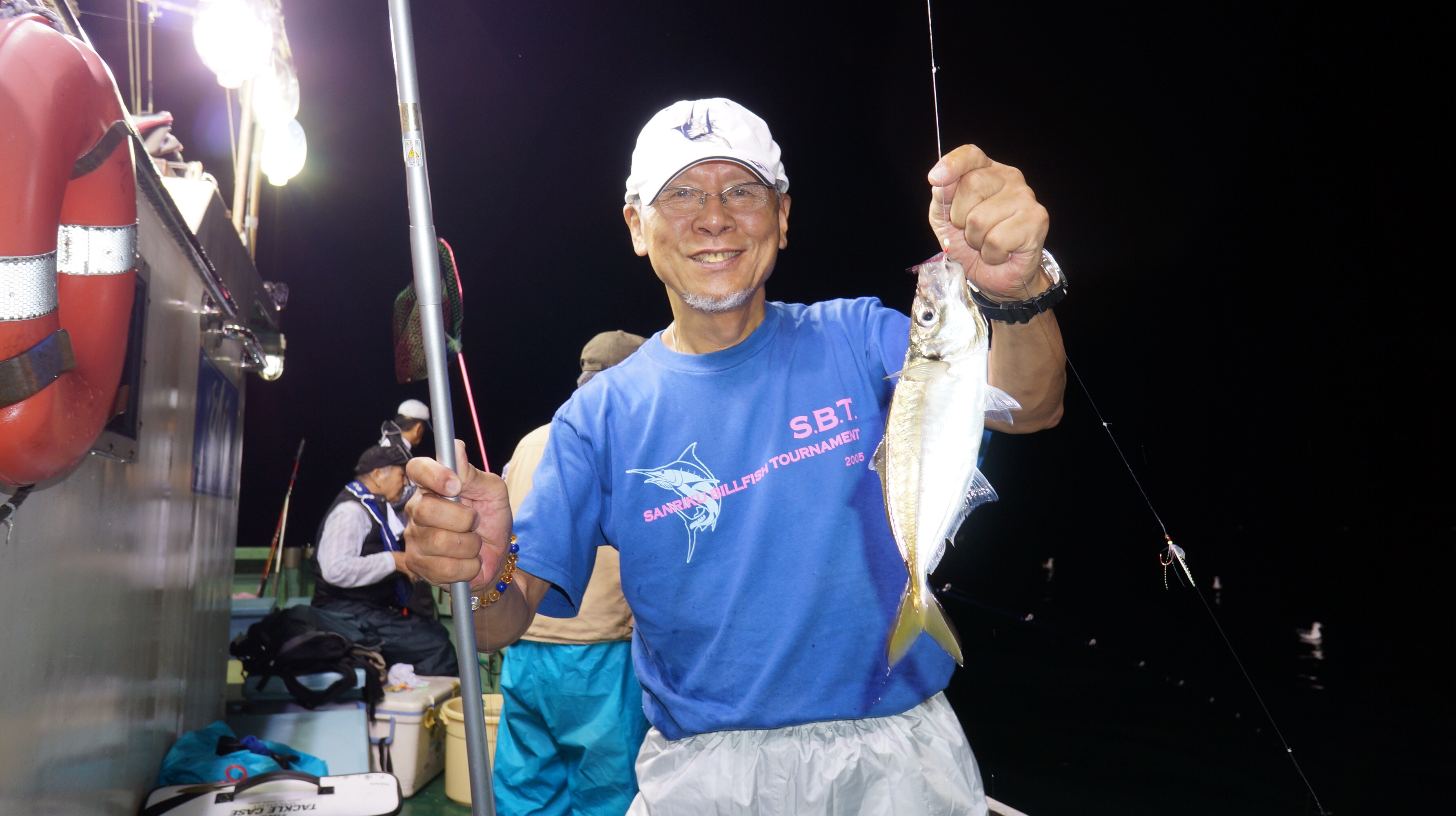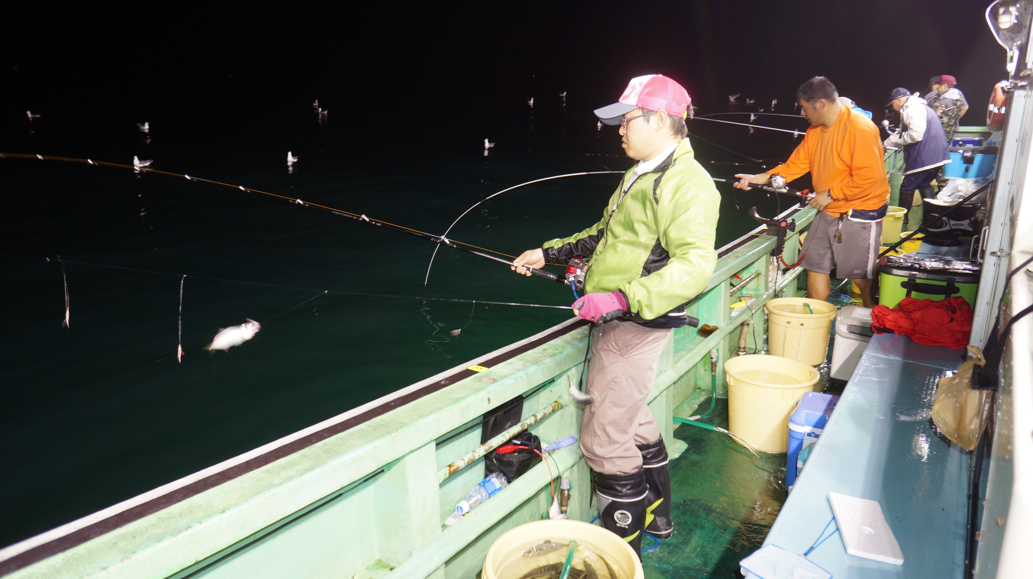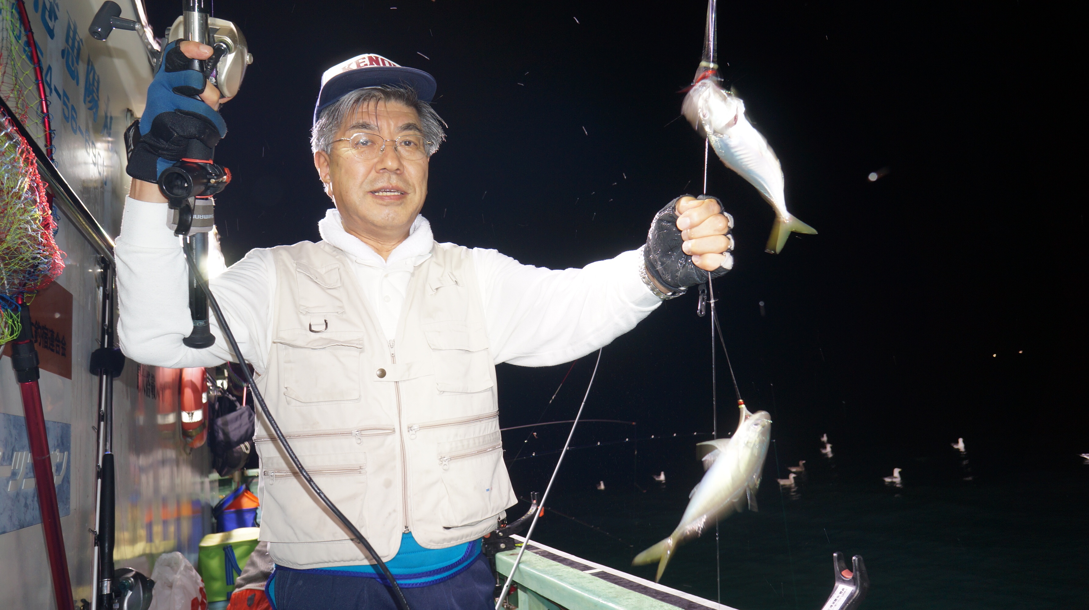 本日出港時、南南西が吹き多少波が、有りましたが、のち風おさまり、魚影良く、入れ食い大漁しました。他マダイ、サバ、イナダ釣れました。