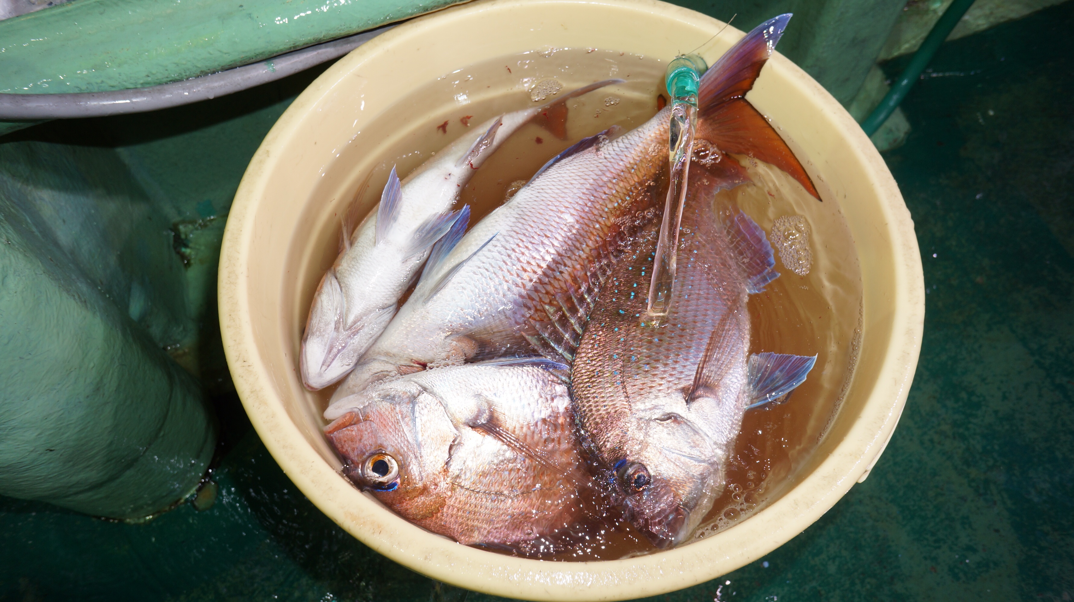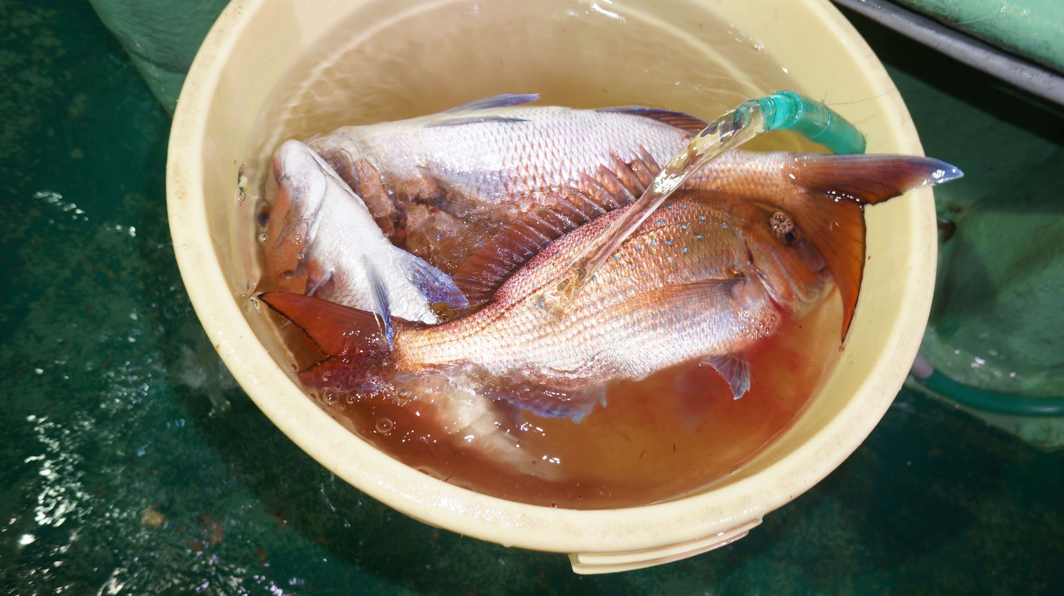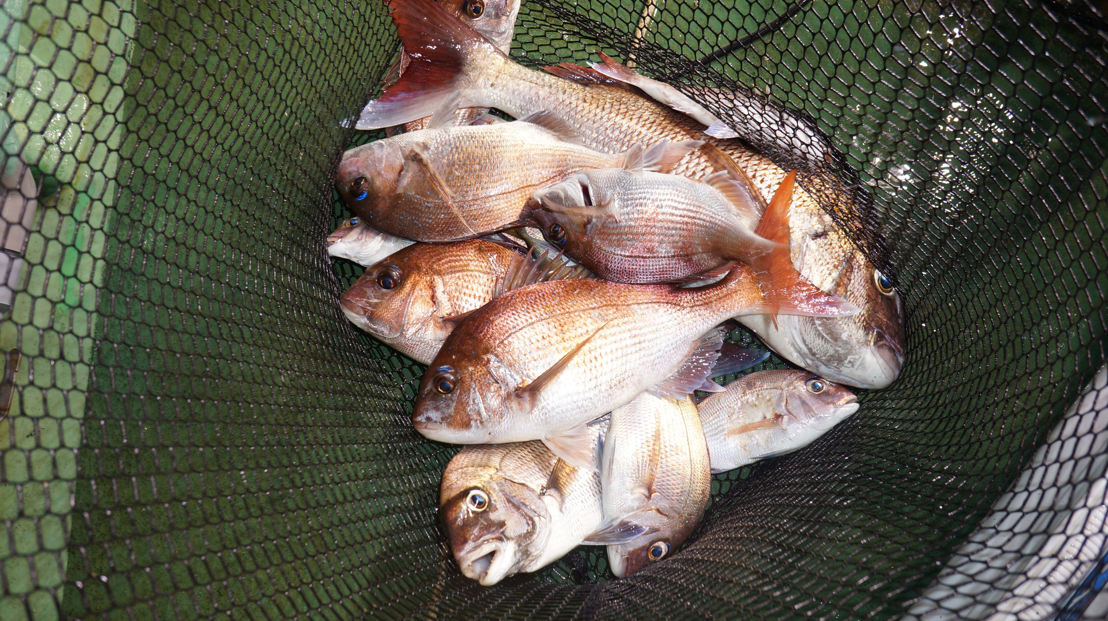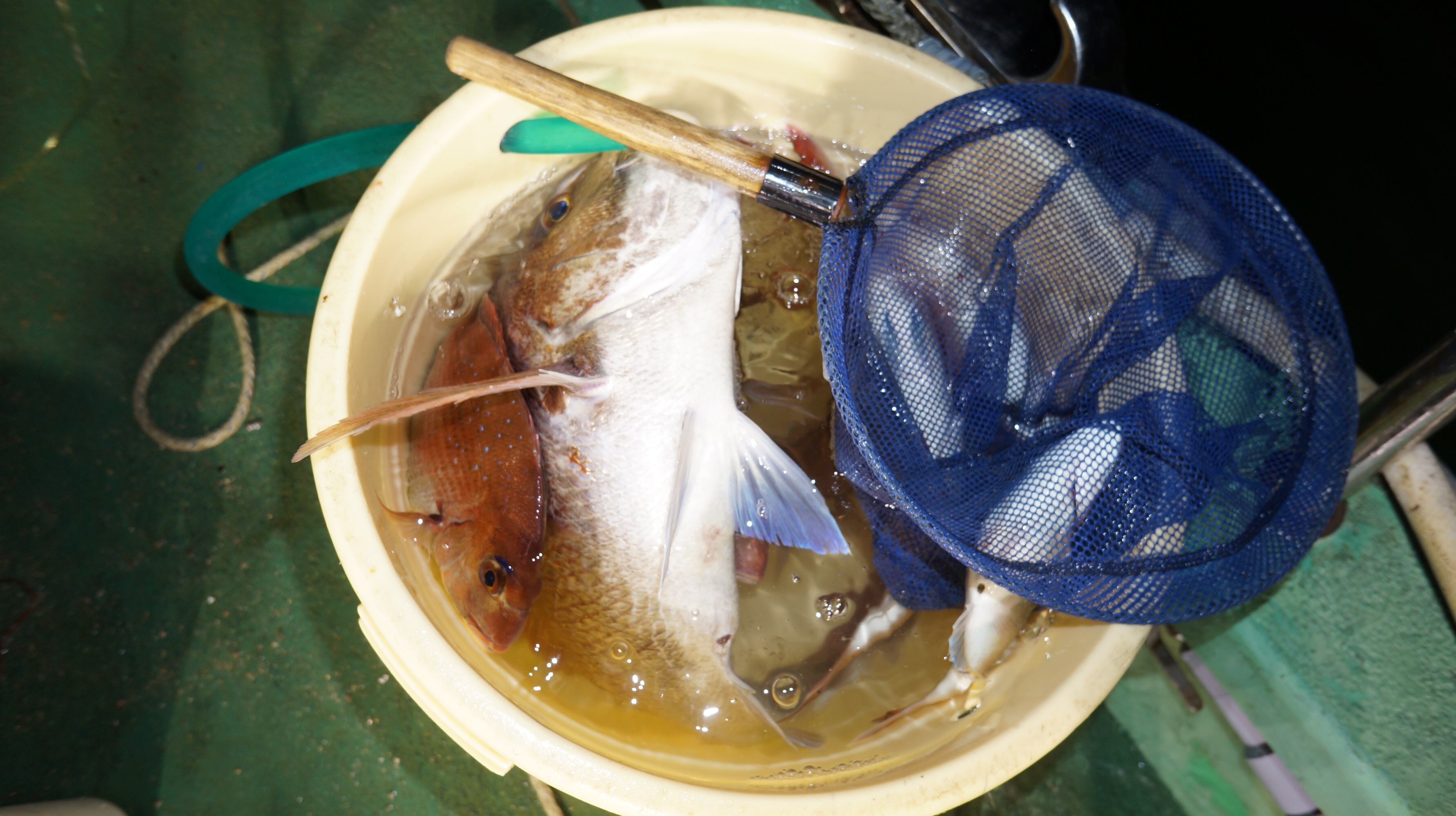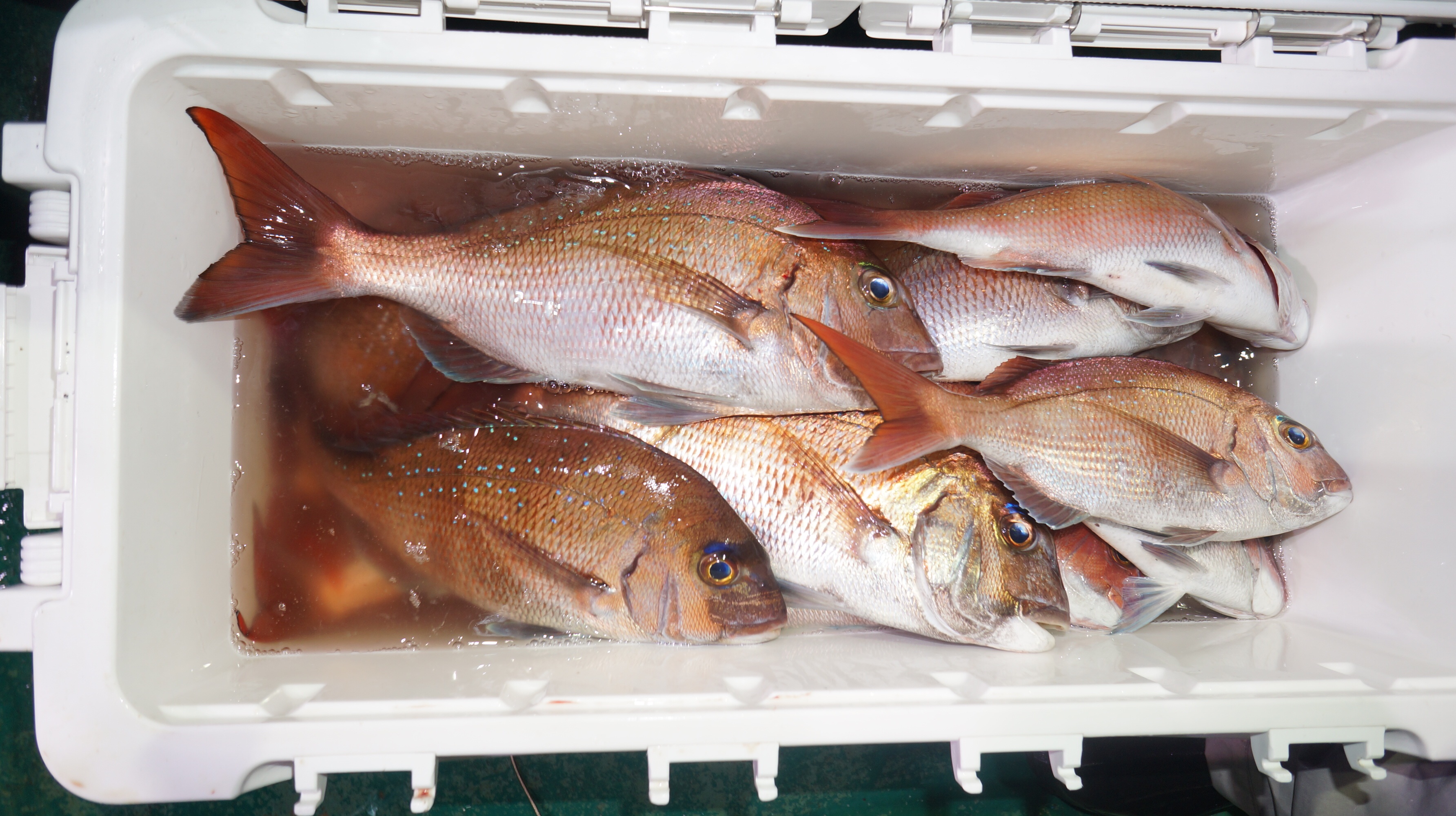 本日海上穏やかでしたが流れ無く苦戦、マダイ0.8〜3.4k6〜26匹、他花ダイ多数匹。