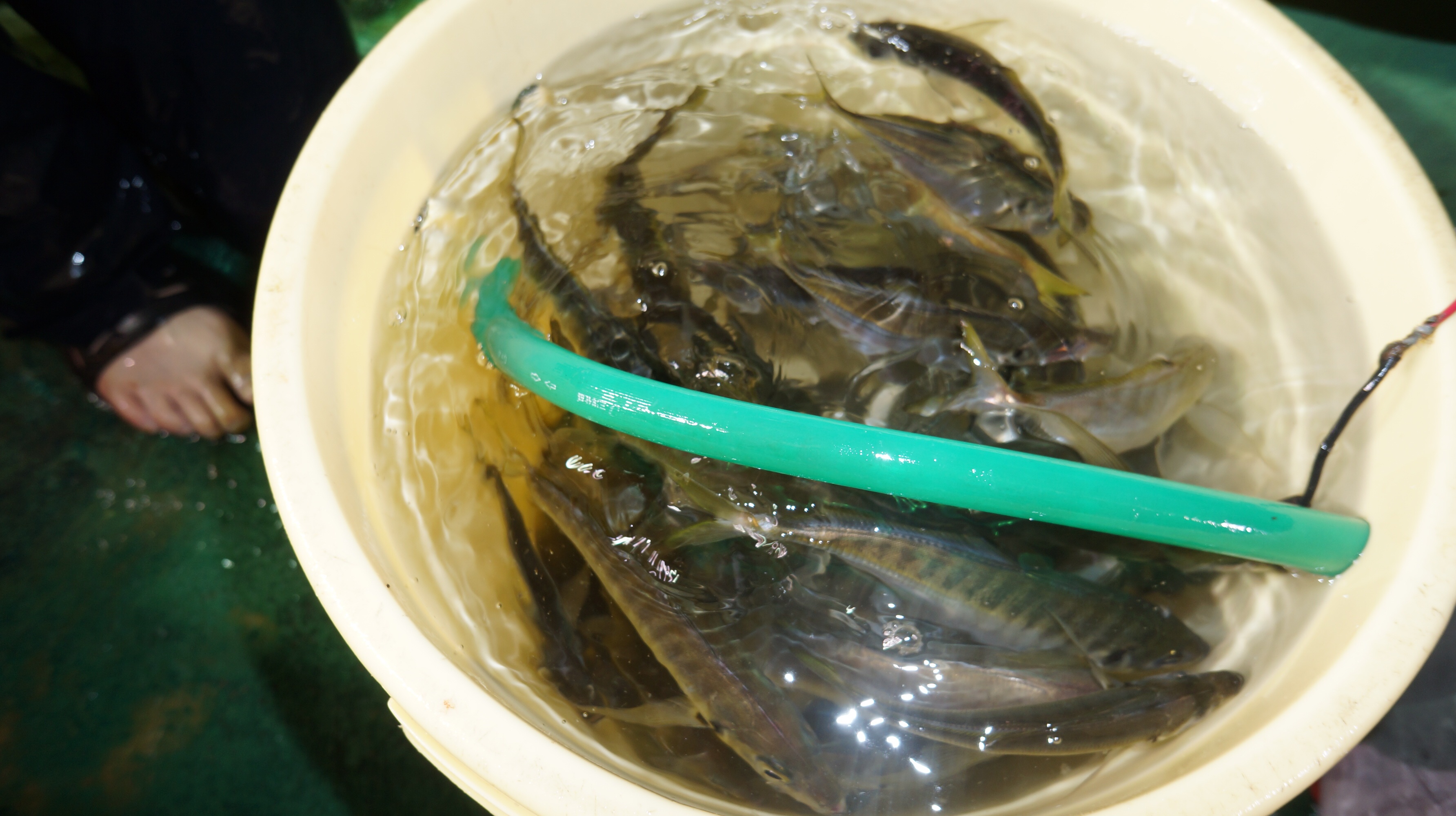 本日は、昨日より、流れ少し治まり、後半良型アジ入れ食いしました。他マダイ、サバ