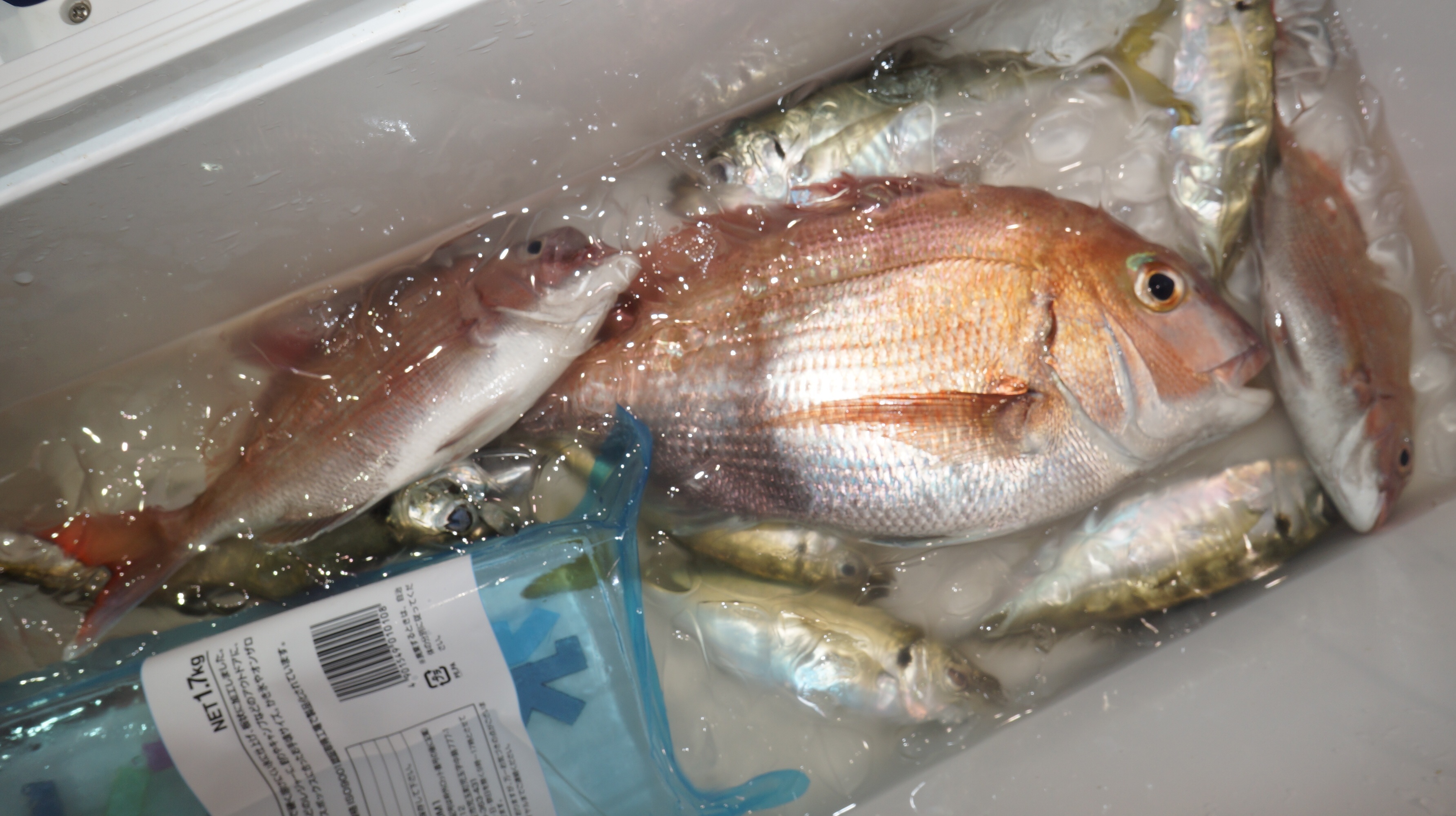 本日は、流れ早かつたが、魚影良く、アジ、イナダ、マダイ釣れました