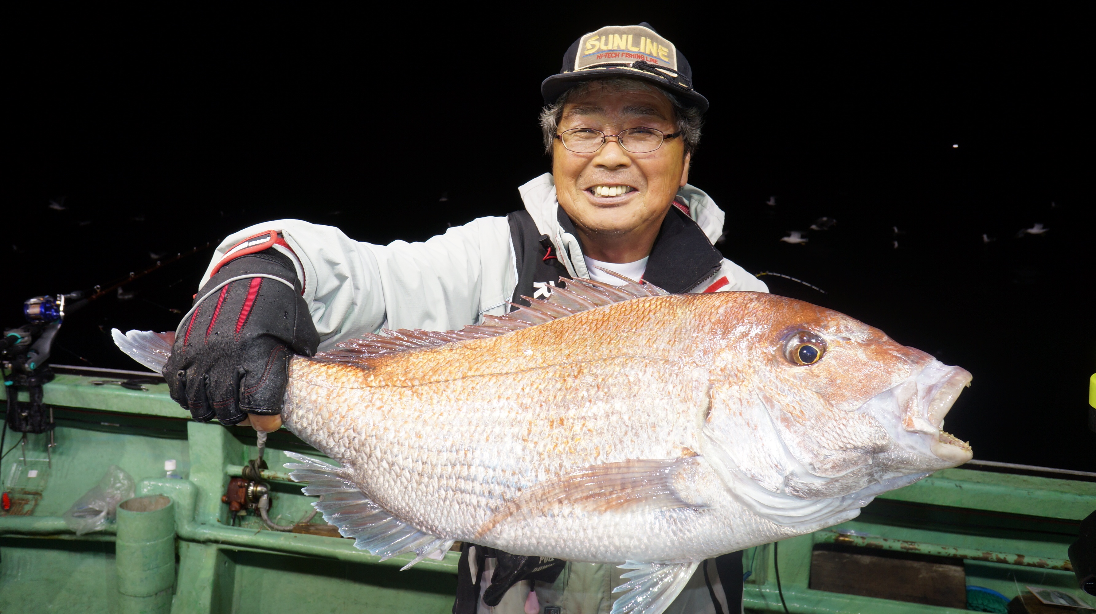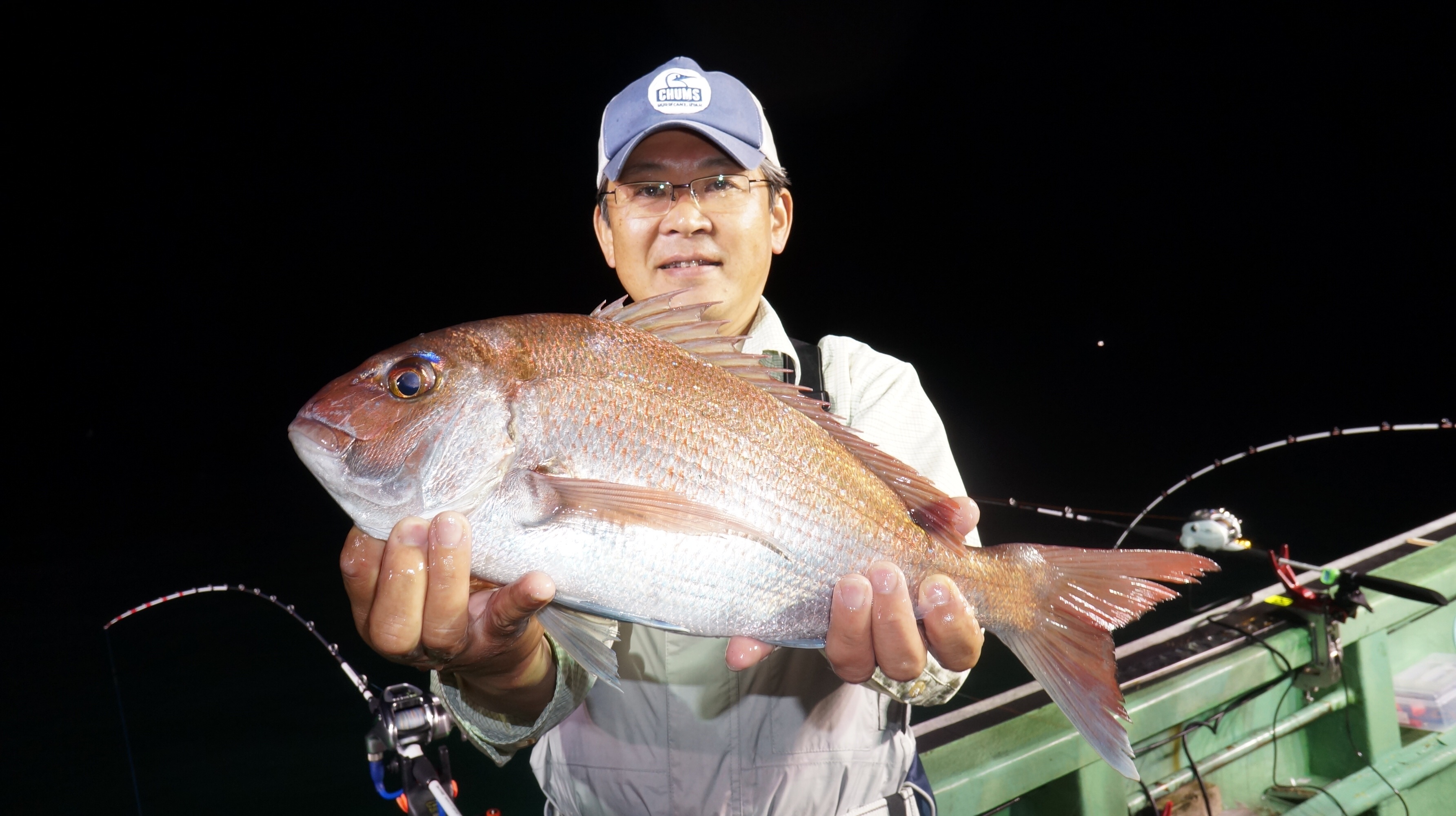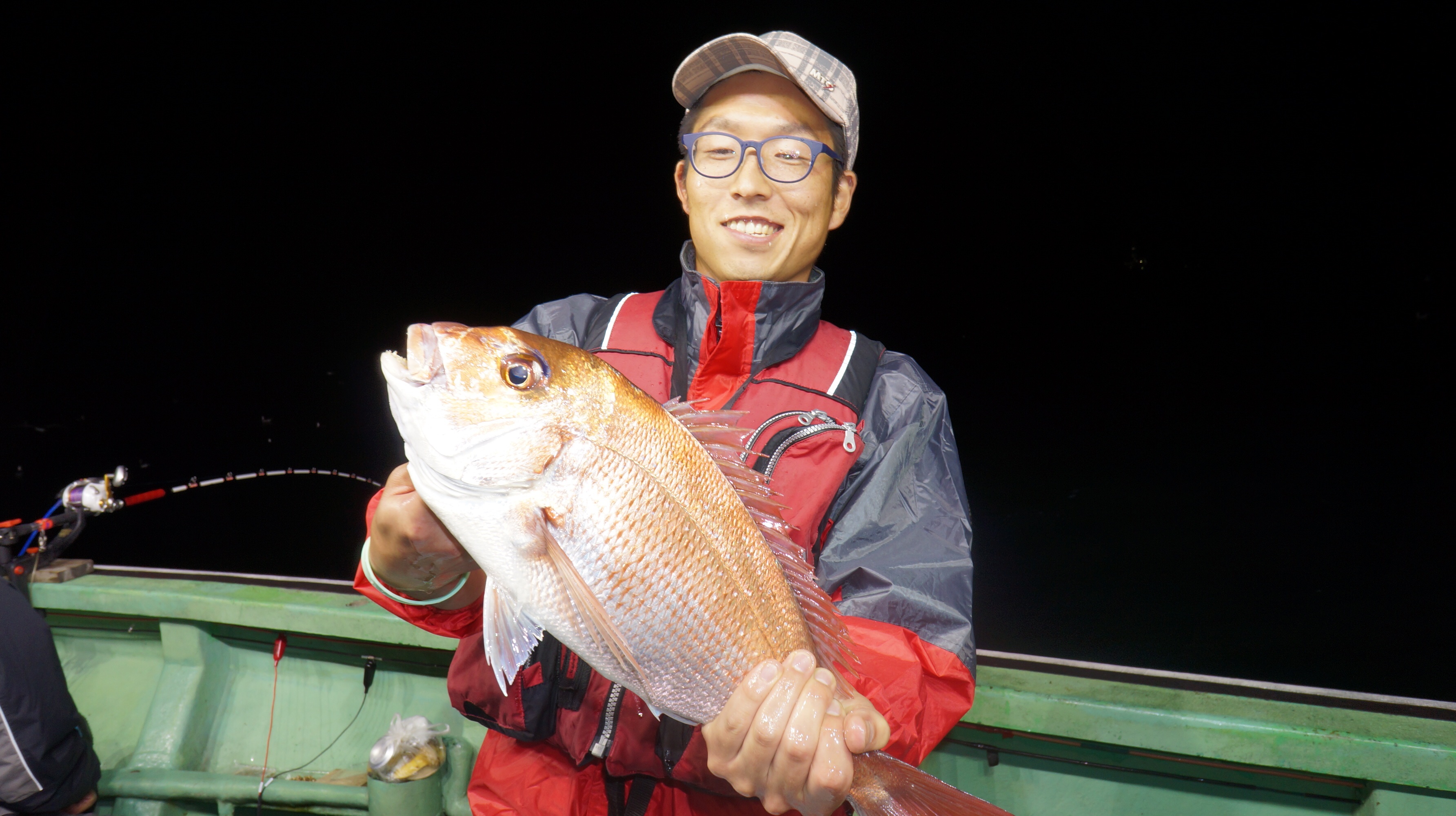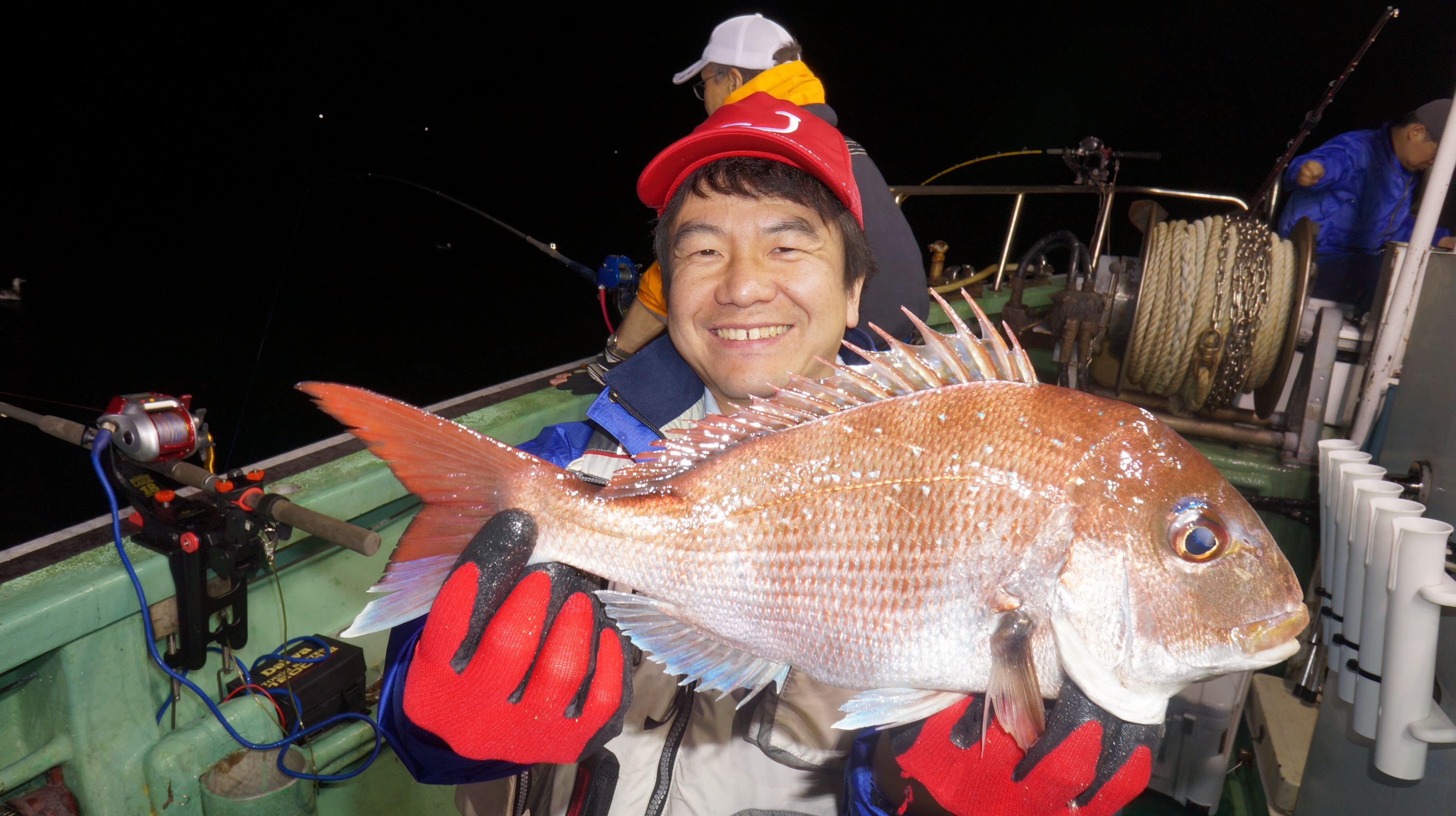 流れ、魚影良くアジ入れ食い、マダイ0.8〜4.8k船中38匹、スズキ3匹.他イナダ