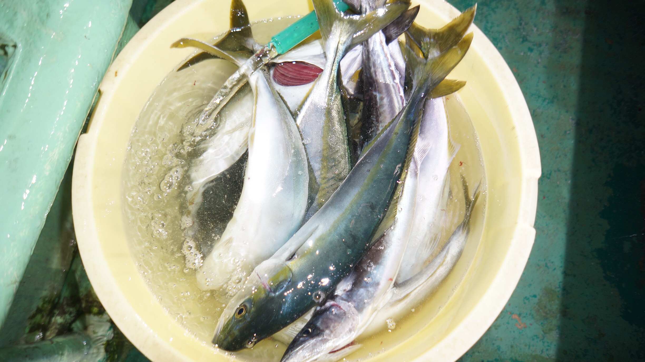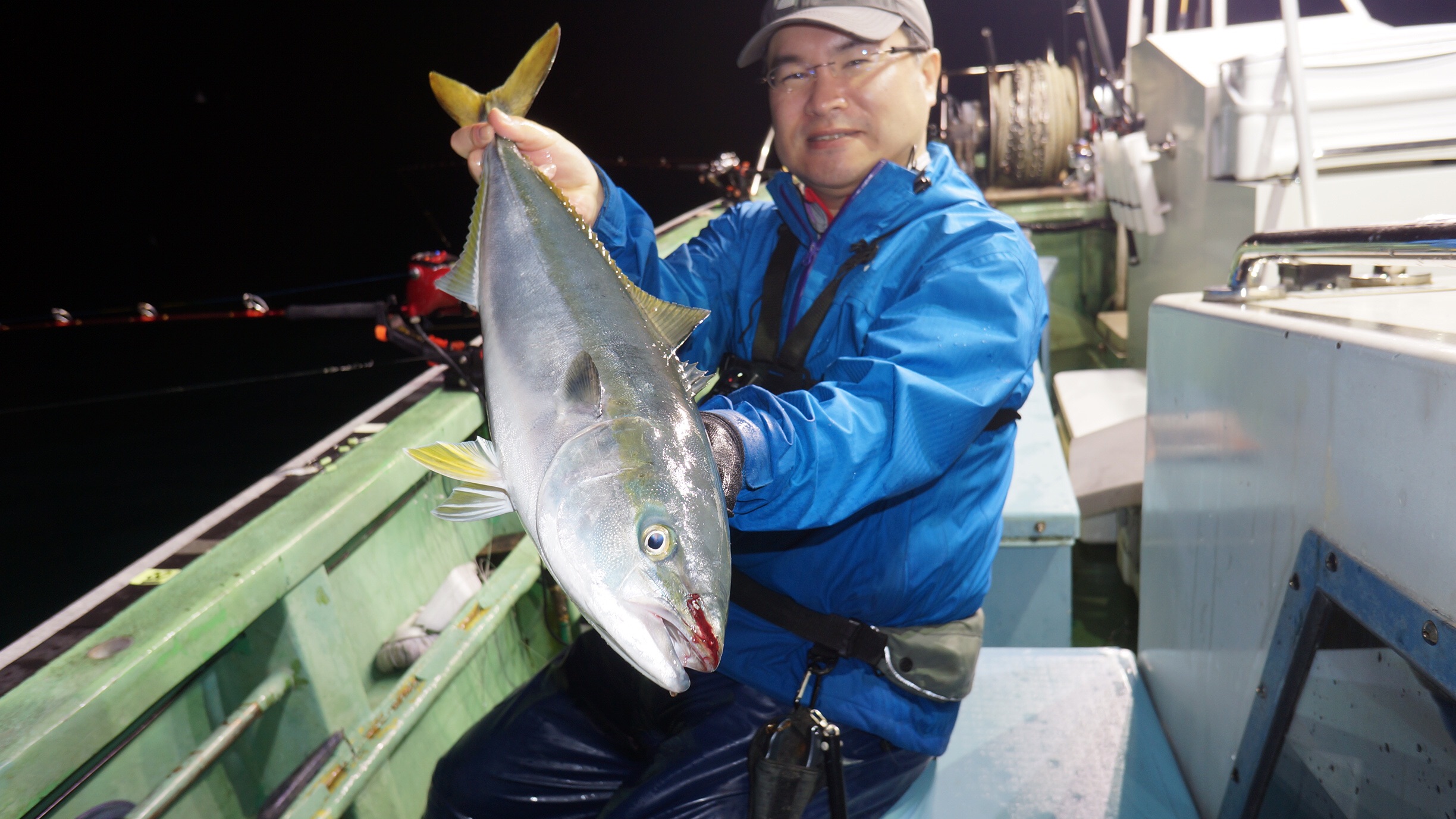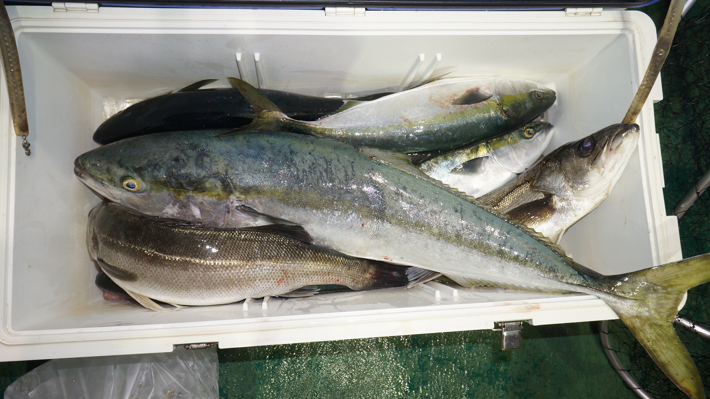 本日海上穏やかだけど時々雨が降りましたが、マダイ、スズキ、ブリ、イナダ釣れました、