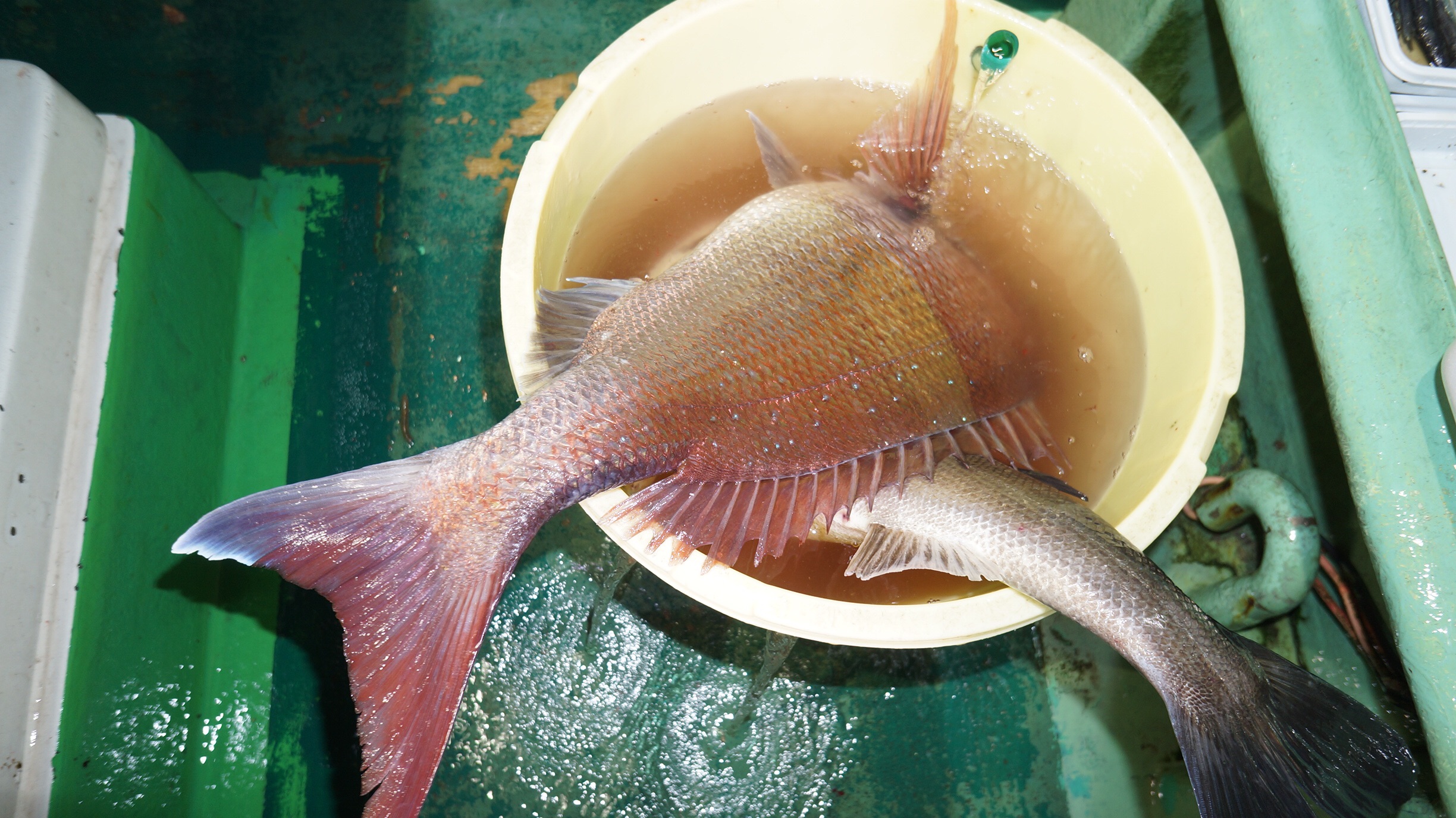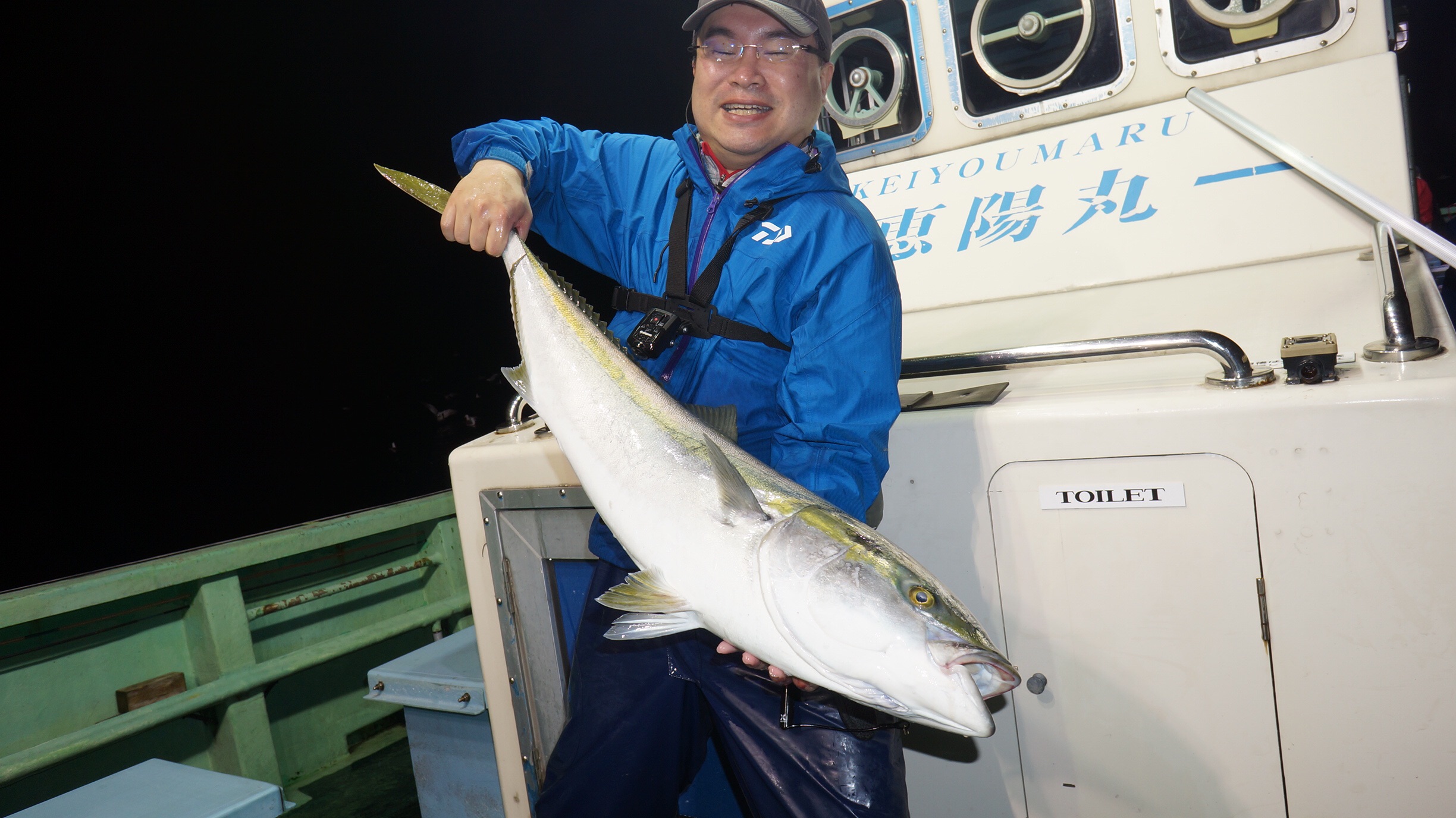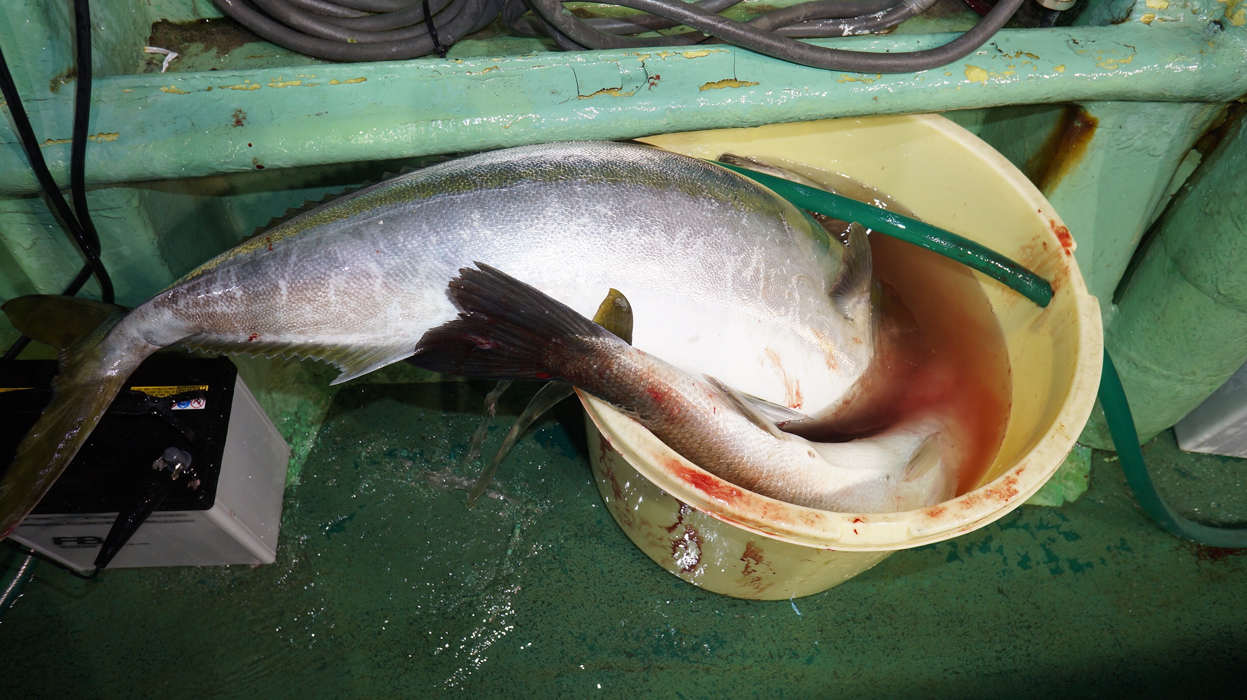本日海上穏やかだけど時々雨が降りましたが、マダイ、スズキ、ブリ、イナダ釣れました、