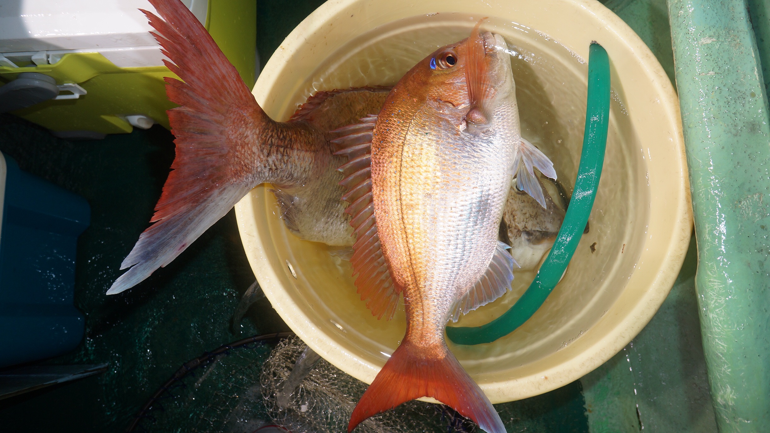 本日予報どおり、岩船沖台風の影響無く終日穏やか流れ良く、大型マダイ、アジ、サバ、ワラサ、イナダ入れ食い大漁しました、本日も予定通り出船予定、空席有り御予約お待ちしております。