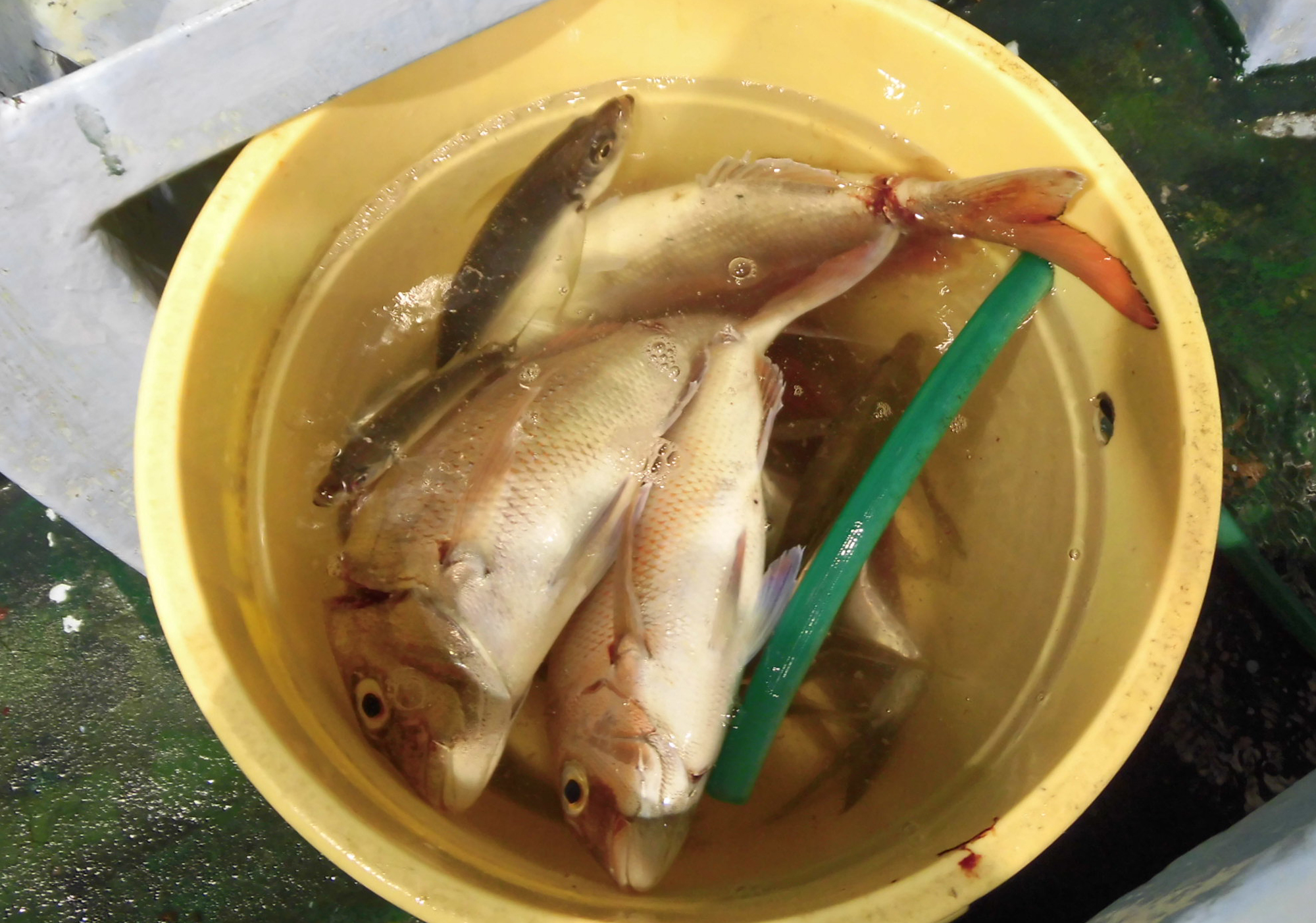本日は天気が良く釣り日和なりました、天気良い日にふく北風がのこり最初波がありました。釣果はアジ、真ダイ、サバ、カマス、サワラ混ざりの釣となりました。