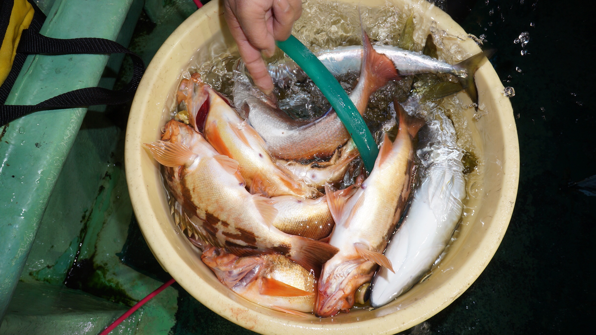 本日海上穏やかでしたが、流れ無く、苦戦んしましたが、なんとか、大型マダイ、ブリ、ワラサ、メバル、釣れました、流れ良くなれば、マダイ、ブリ有望。マダイ1~4.9kトップで34匹、