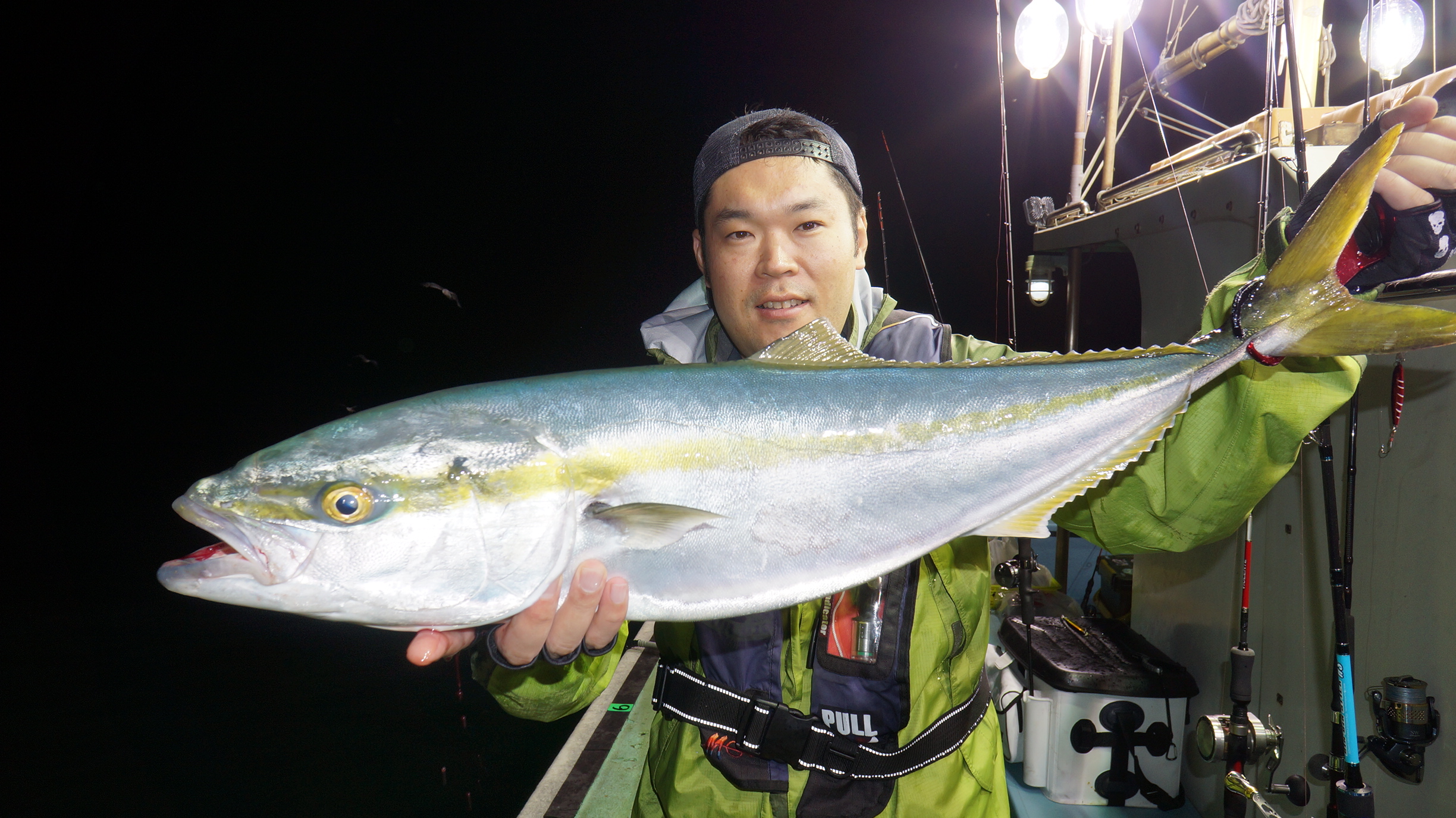 本日海上穏やか、魚影流れ良く、アジ入れ食いはじまりました、他ワラサ、スズキ、大型マダイばらし、アジこれから有望御予約お待ちしております。